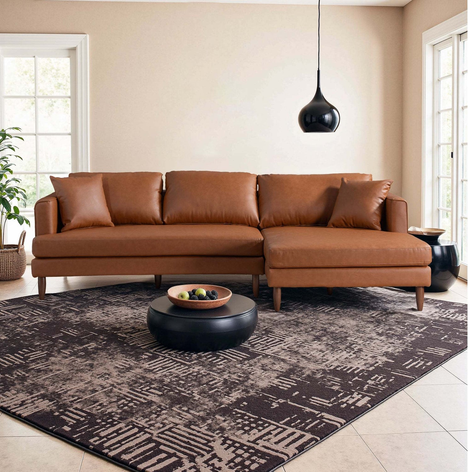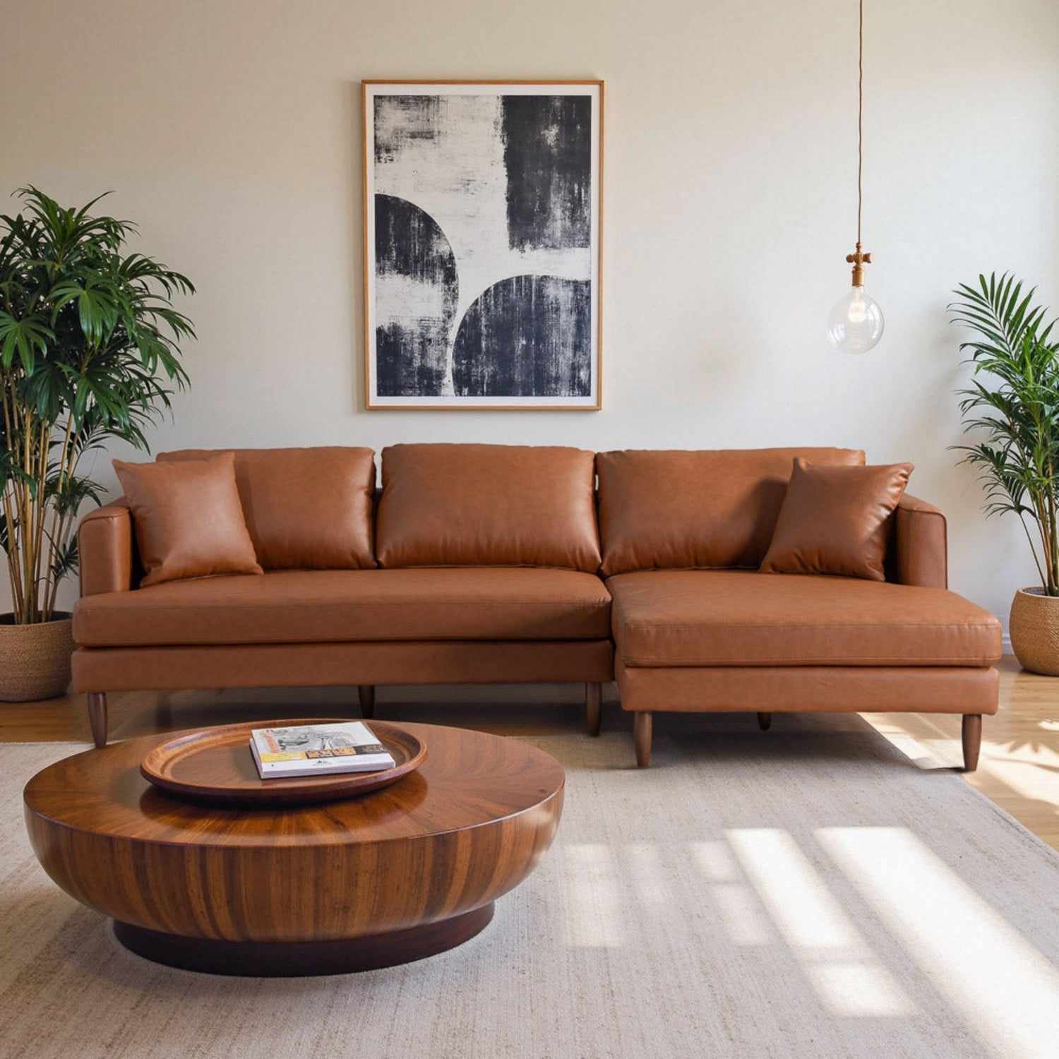 Blake Mid-Century Modern L-Shaped Sectional Sofa in Cognac Vegan Leather with Right Facing Design