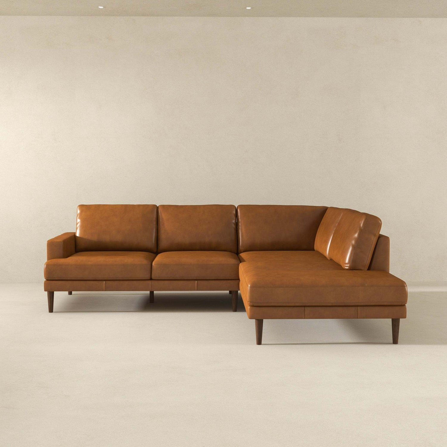 Corbin Right-Facing Tan Leather Sectional Sofa