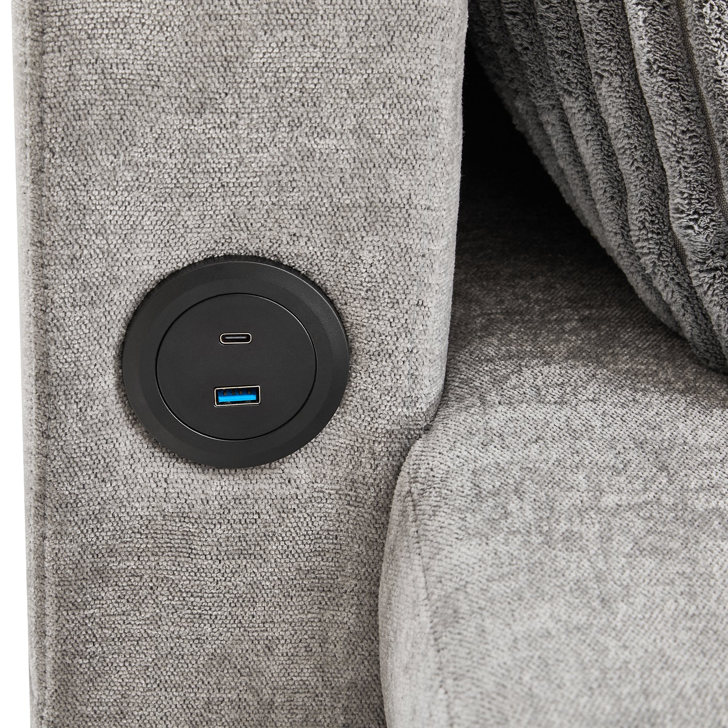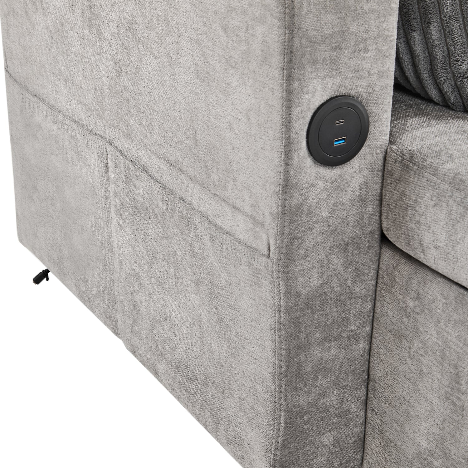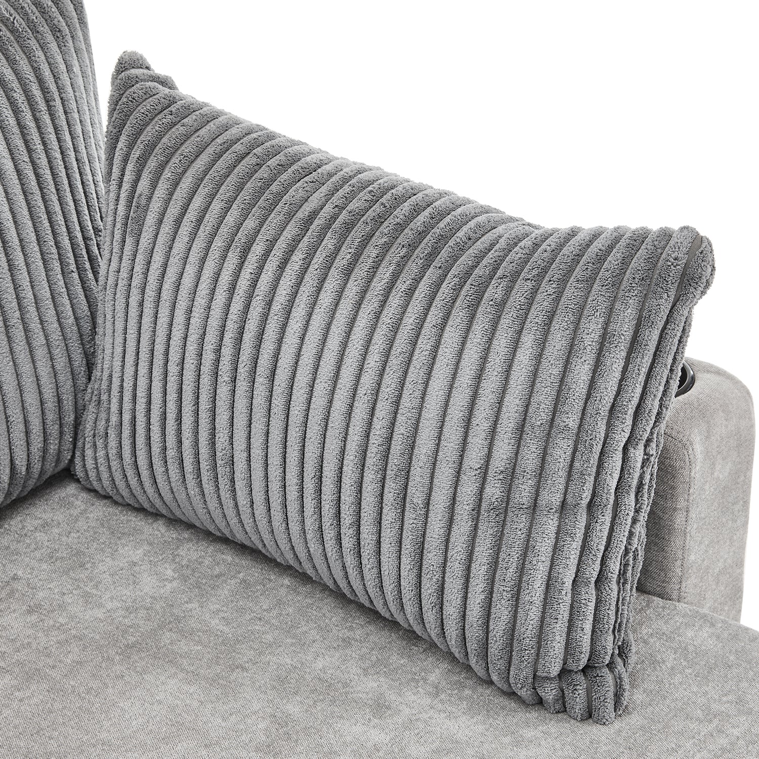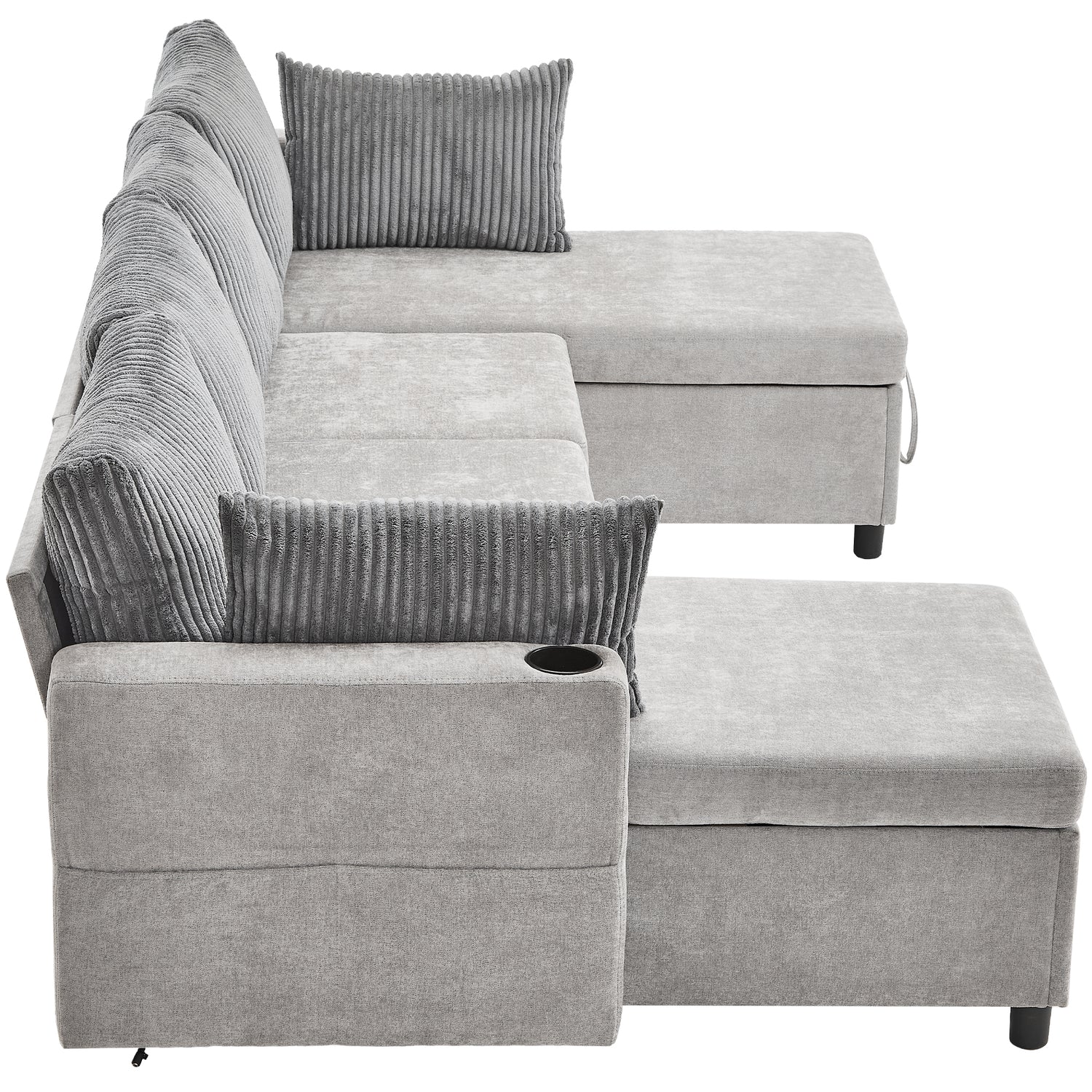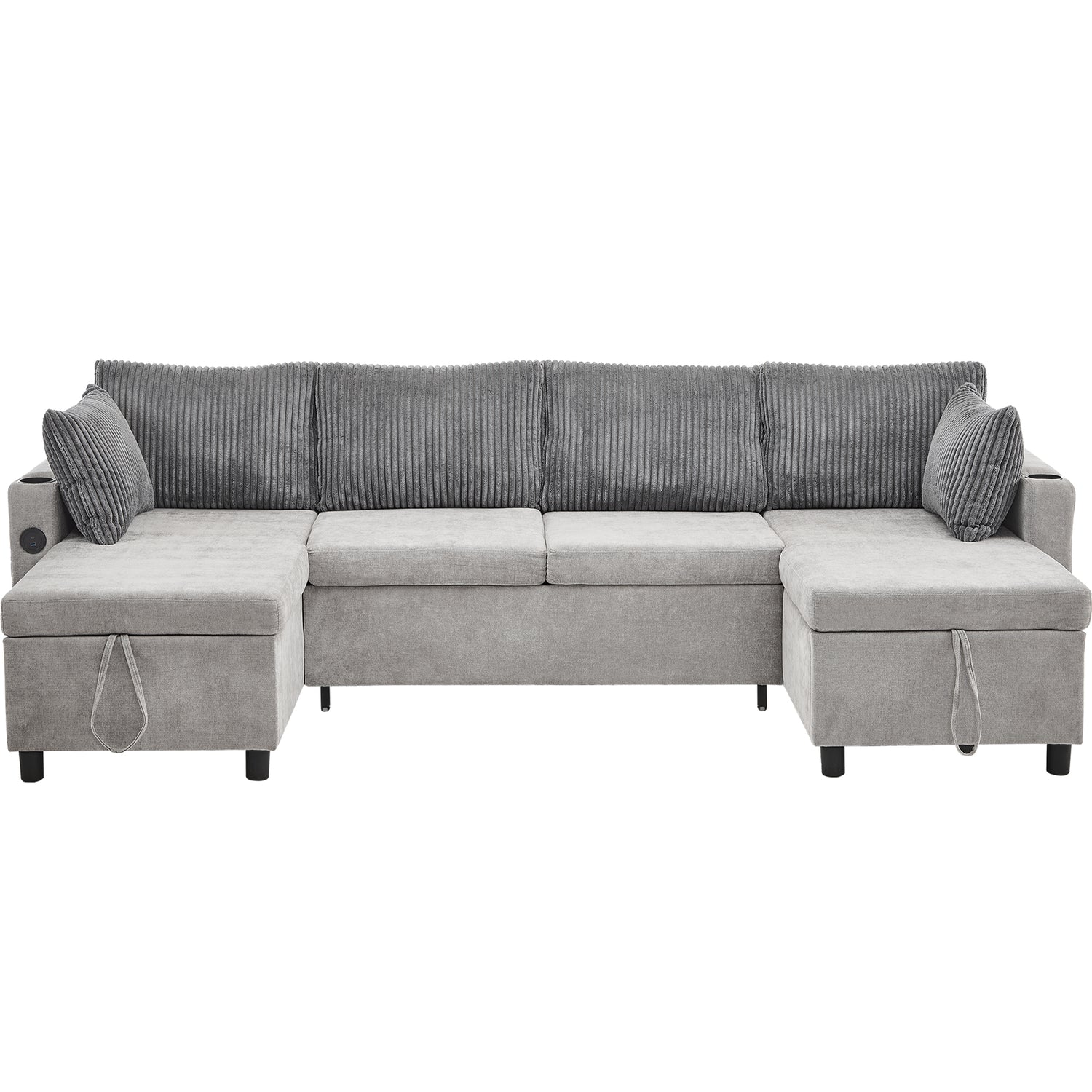 Versatile Grey Sectional Sofa Pull-out Bed with Storage, USB Ports & Cup Holders, Corduroy & Chenille Fabric, 111.8'