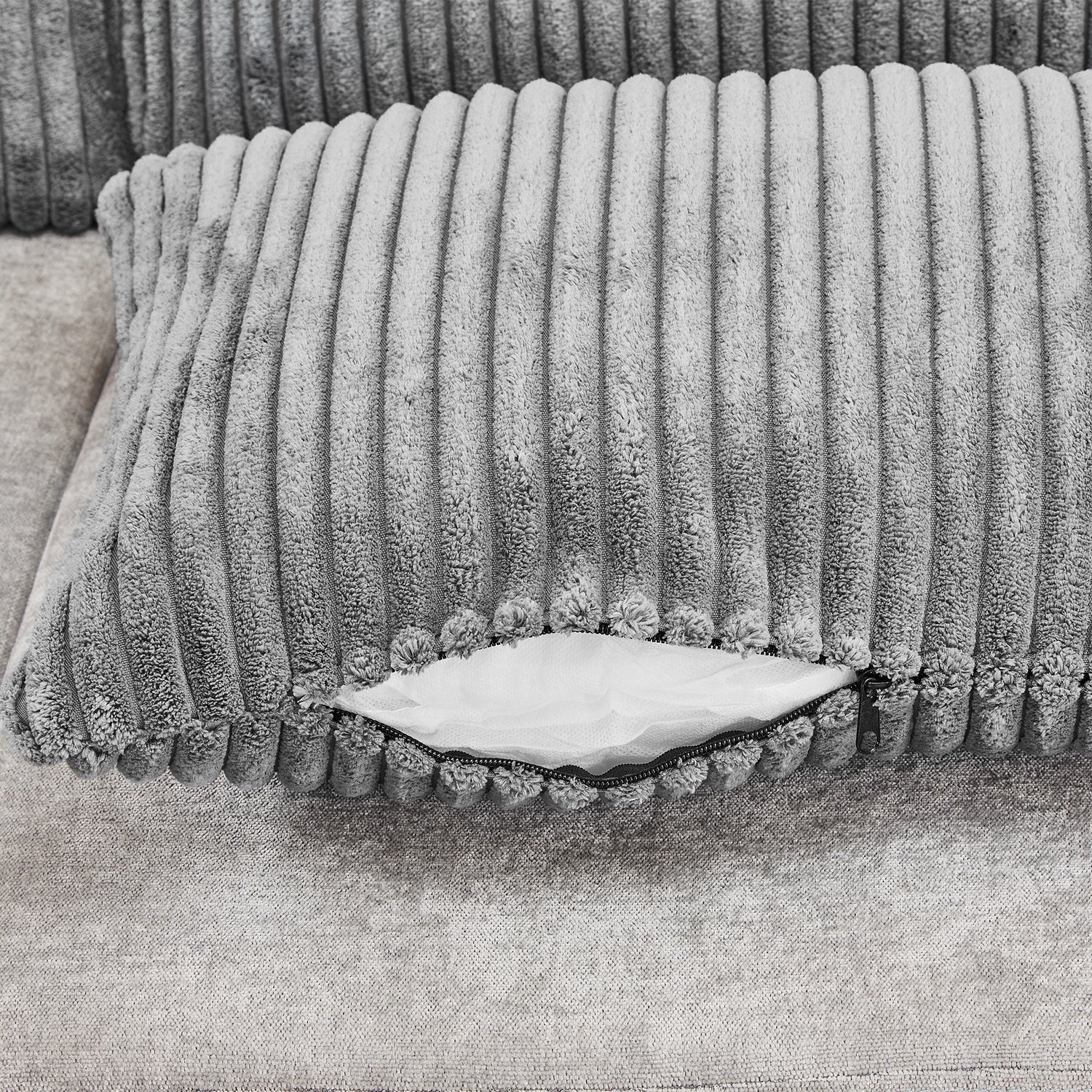 • Thoughtful Design - The sectional sofa includes two chenille toss pillows, enhancing both aesthetics and comfort. It also features side storage pockets for easy access to magazines, remotes, and other small items, helping to save space.