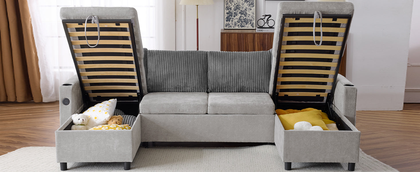 • Double Storage Chaise Lounges - Each of the two chaise lounges features additional storage space underneath, ideal for discreetly storing blankets, clothes, or toys, keeping your living room organized.