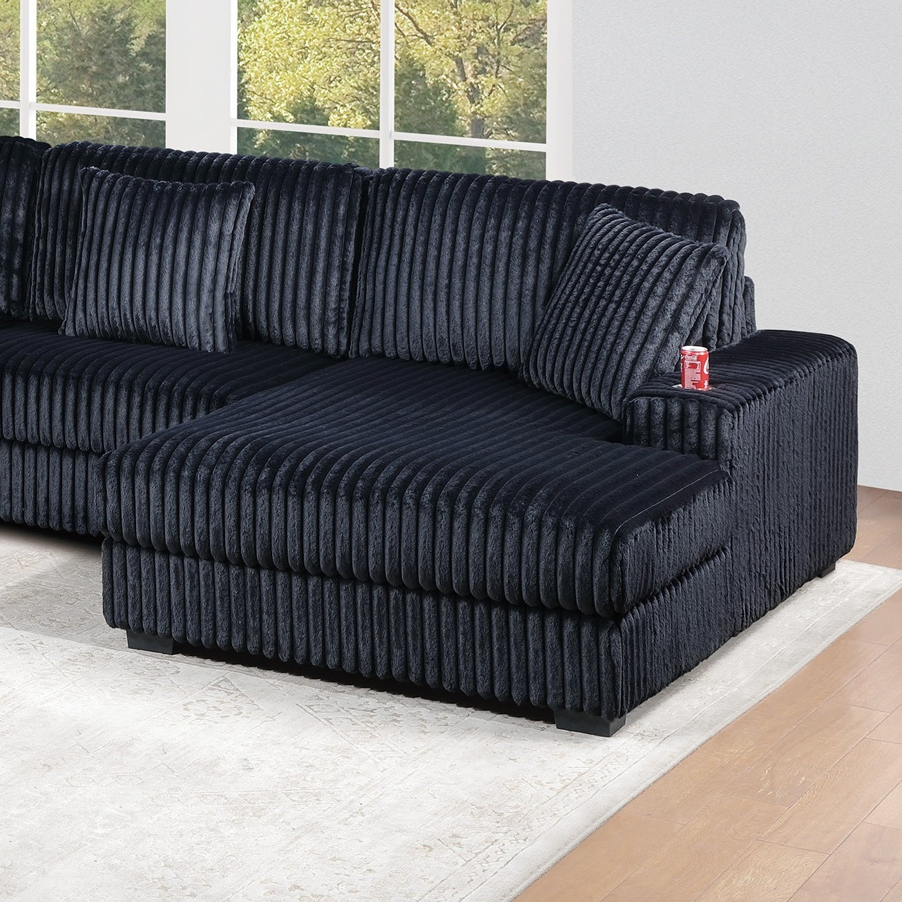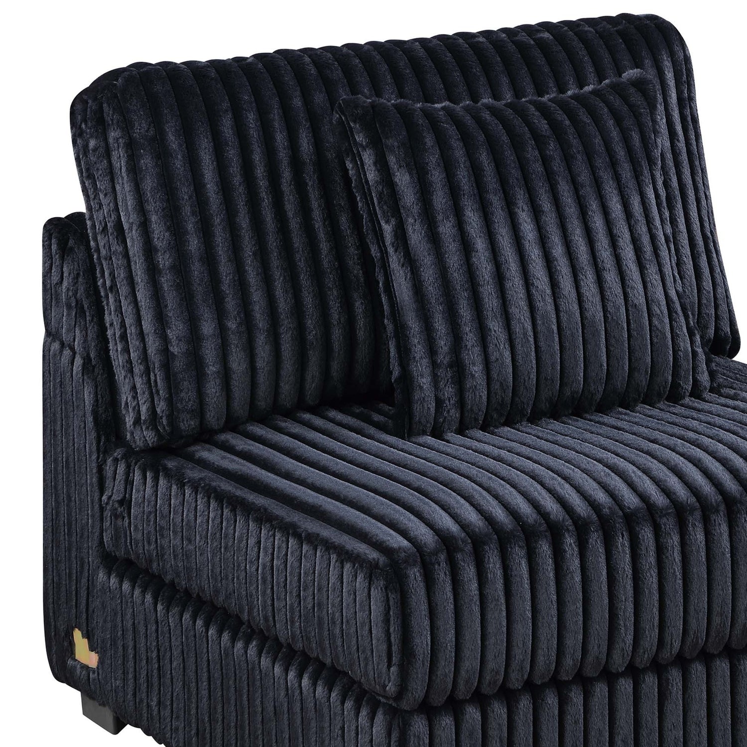 Contemporary Style 6-PC Modular Sectional Sofa Set Black Finish Corduroy Upholstered Living Room Plush Sofa Chaise Couch