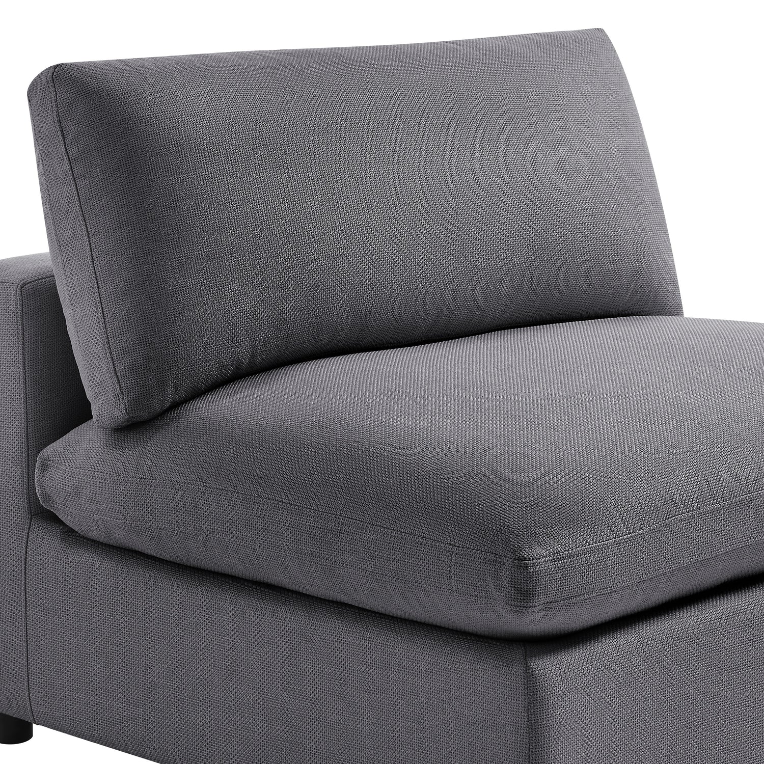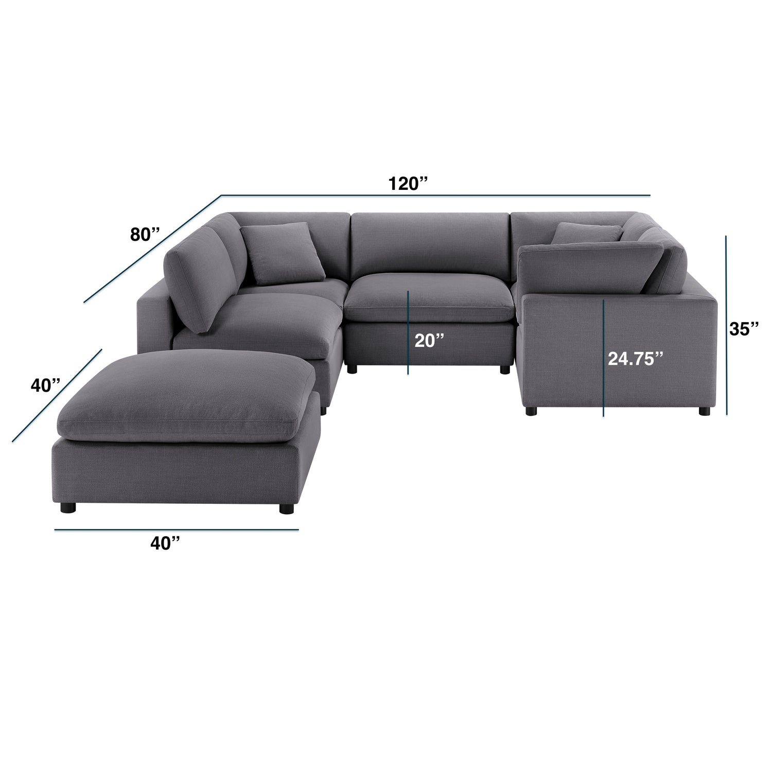 - Introducing the ultimate in comfort and versatility - our Cassandra Modular Sectional, designed to elevate your home living experience. Crafted with a sturdy solid hardwood frame, this sectional is built to last and withstand the rigors of everyday family life. Upholstered a variety of plush fabric options, each offering a luxurious look and feel that is both family and pet friendly. This sectional includes (2) armless chairs, (3) corner wedges, and (1) ottoman