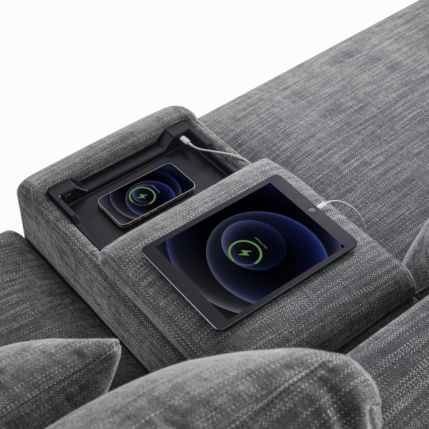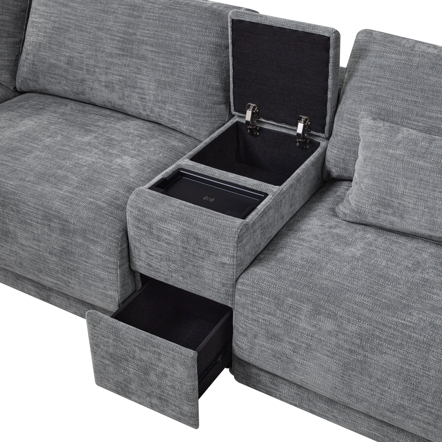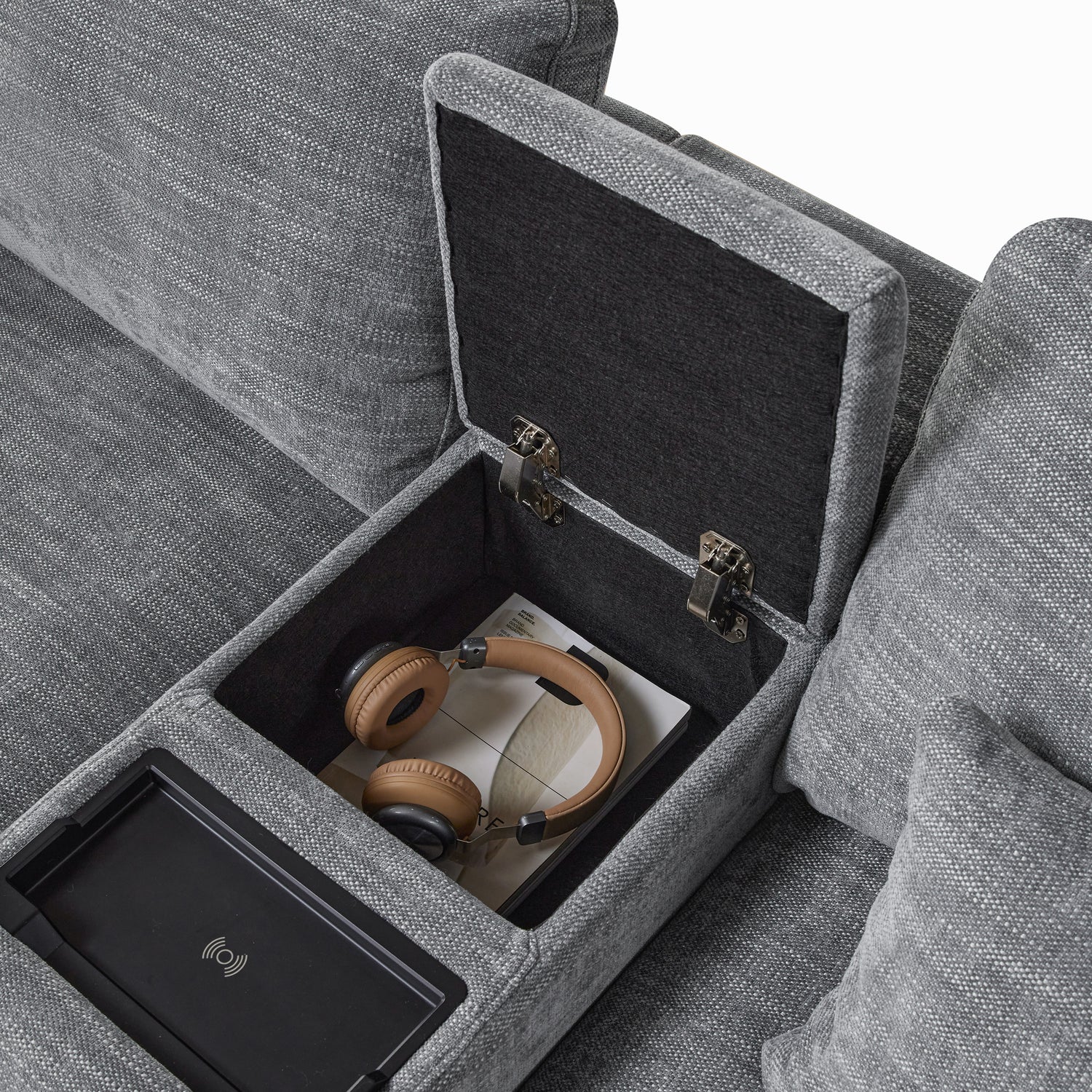 - Functional Storage Tray with Wired & Wireless Charging: A highly convenient feature of this sofa is the multi-functional storage tray, which not only provides a flat surface to hold items but also incorporates both wired and wireless charging capabilities. This means you can keep your devices charged effortlessly while relaxing on the sofa.