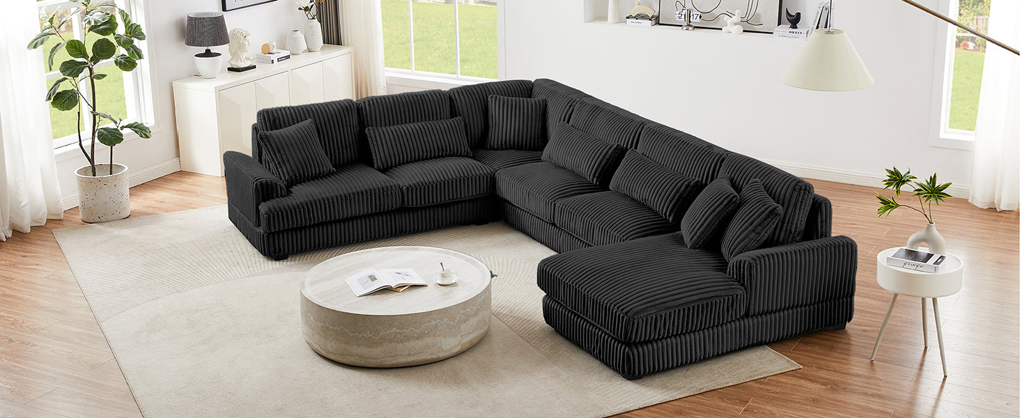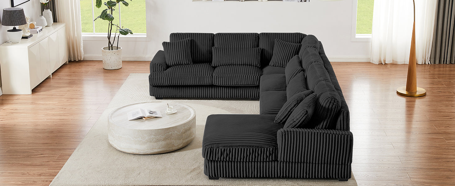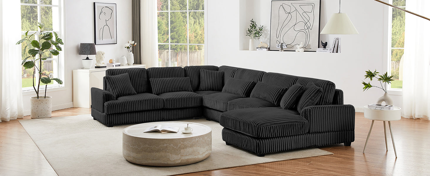 - Ultra-soft Corduroy Fabric - The sectional sofa is crafted from ultra-soft corduroy fabric, which provides a luxurious and inviting feel that enhances comfort for lounging and relaxation. This material is not only exceptionally plush but also durable, ensuring long-lasting use while maintaining its elegant appearance. Additionally, the rich texture of corduroy adds visual interest and warmth to any living space, making it a stylish choice that complements a variety of decor styles.