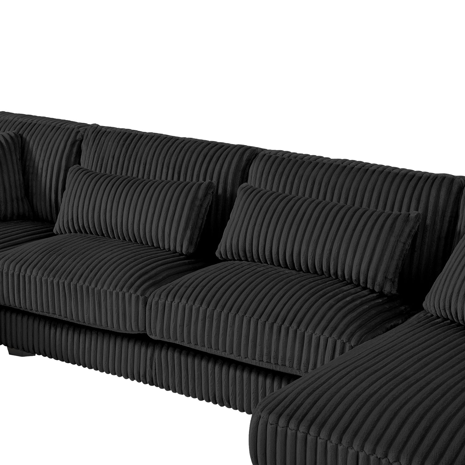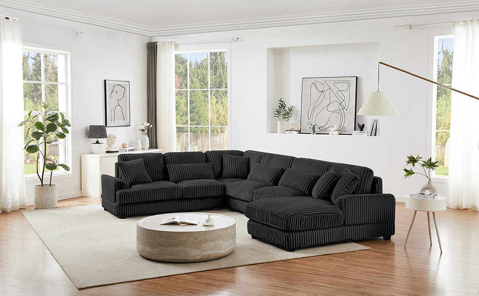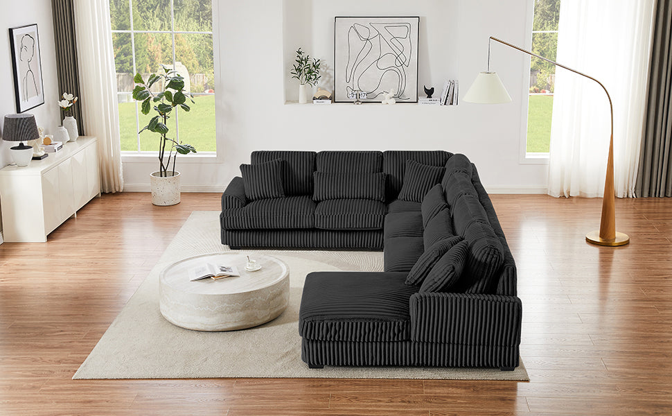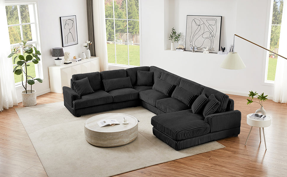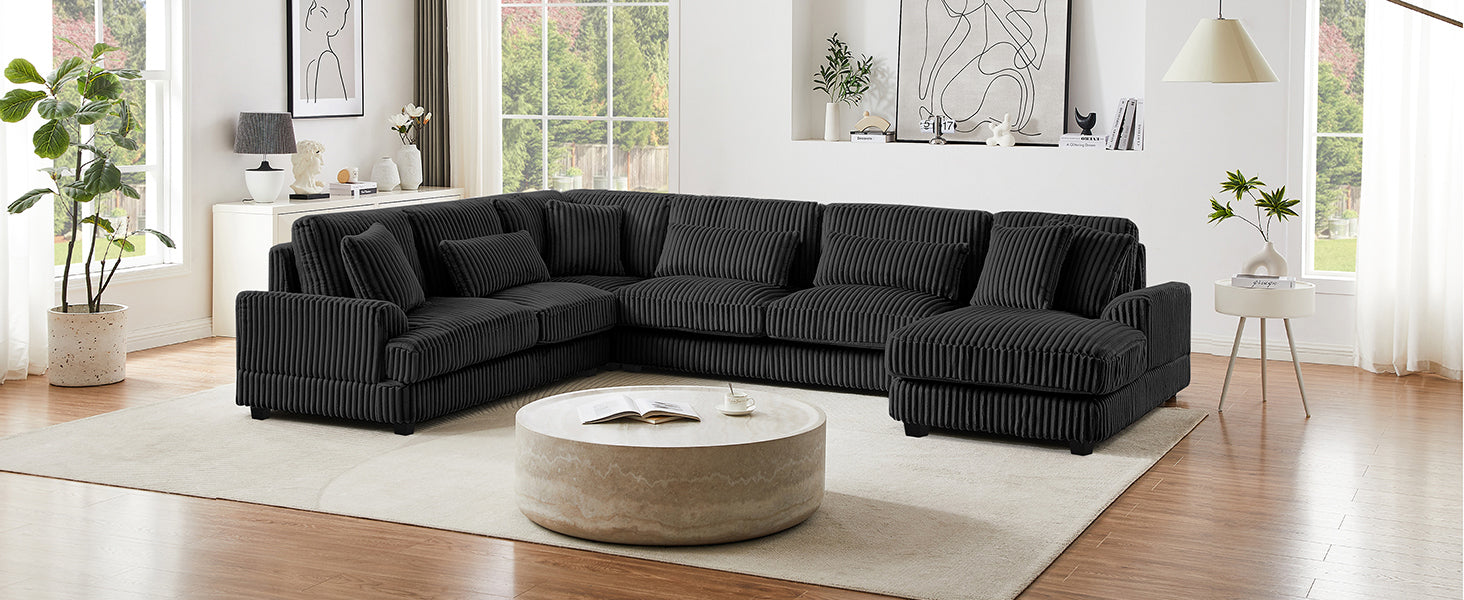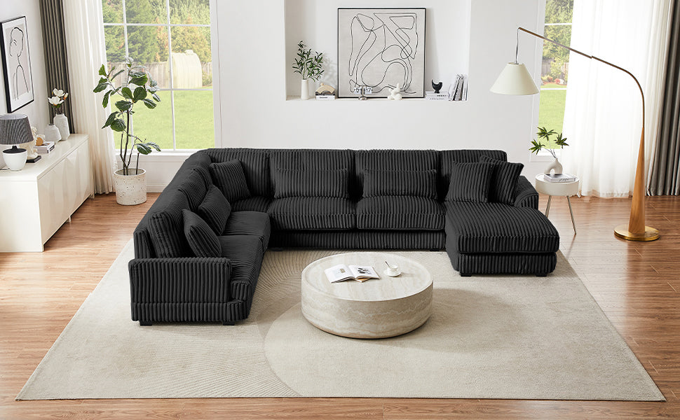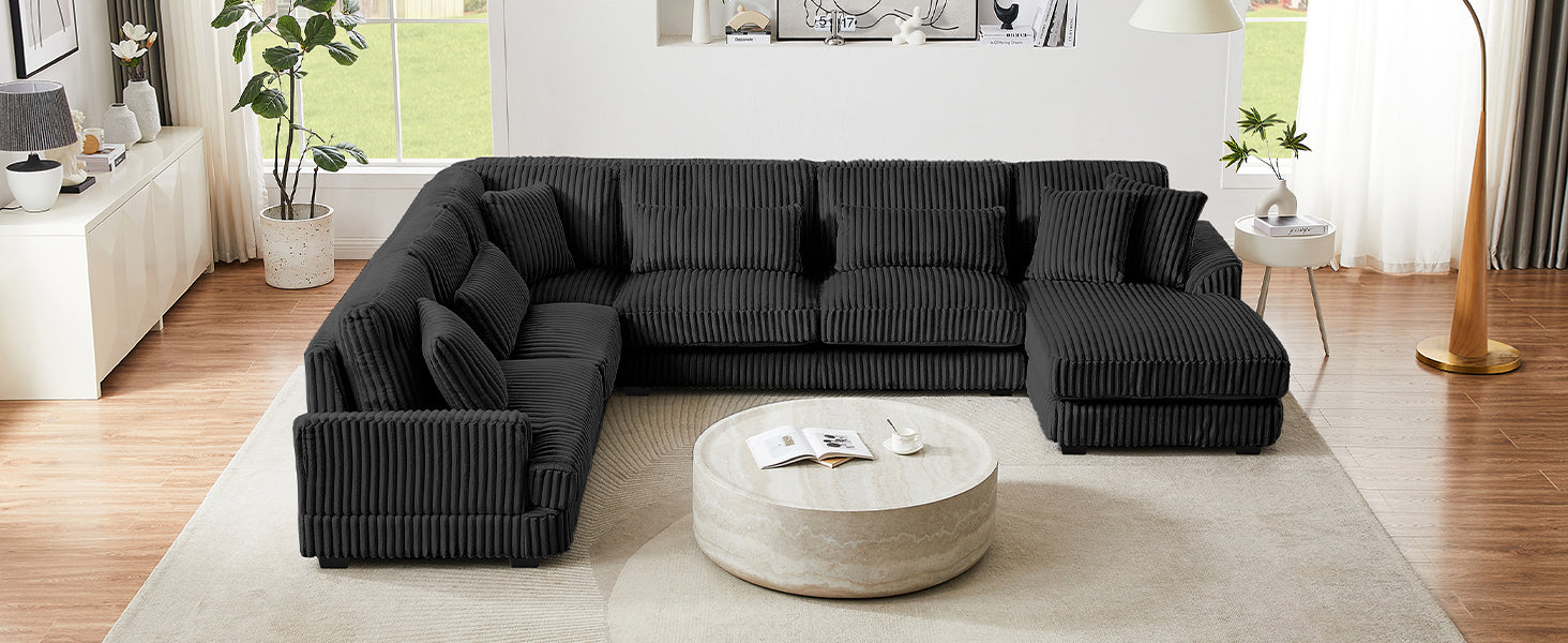 Modern Oversized U-shaped Sectional Sofa with Chaise Lounge Upholstered in Soft Black Corduroy