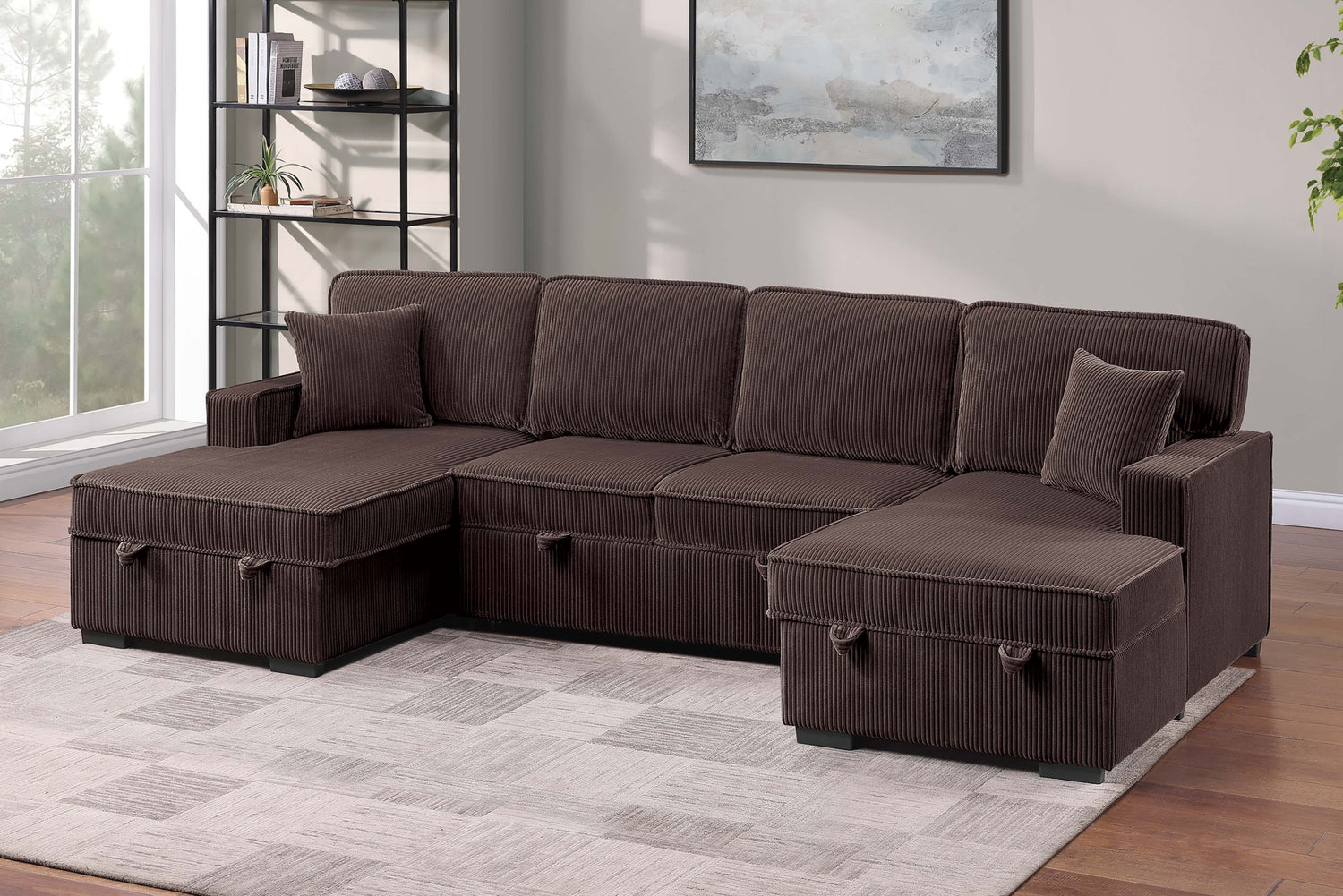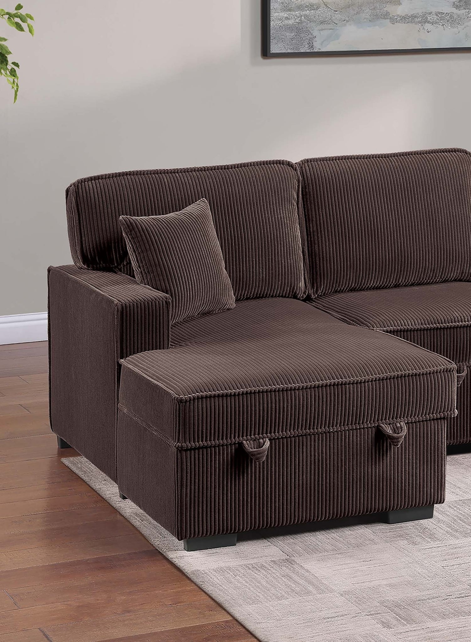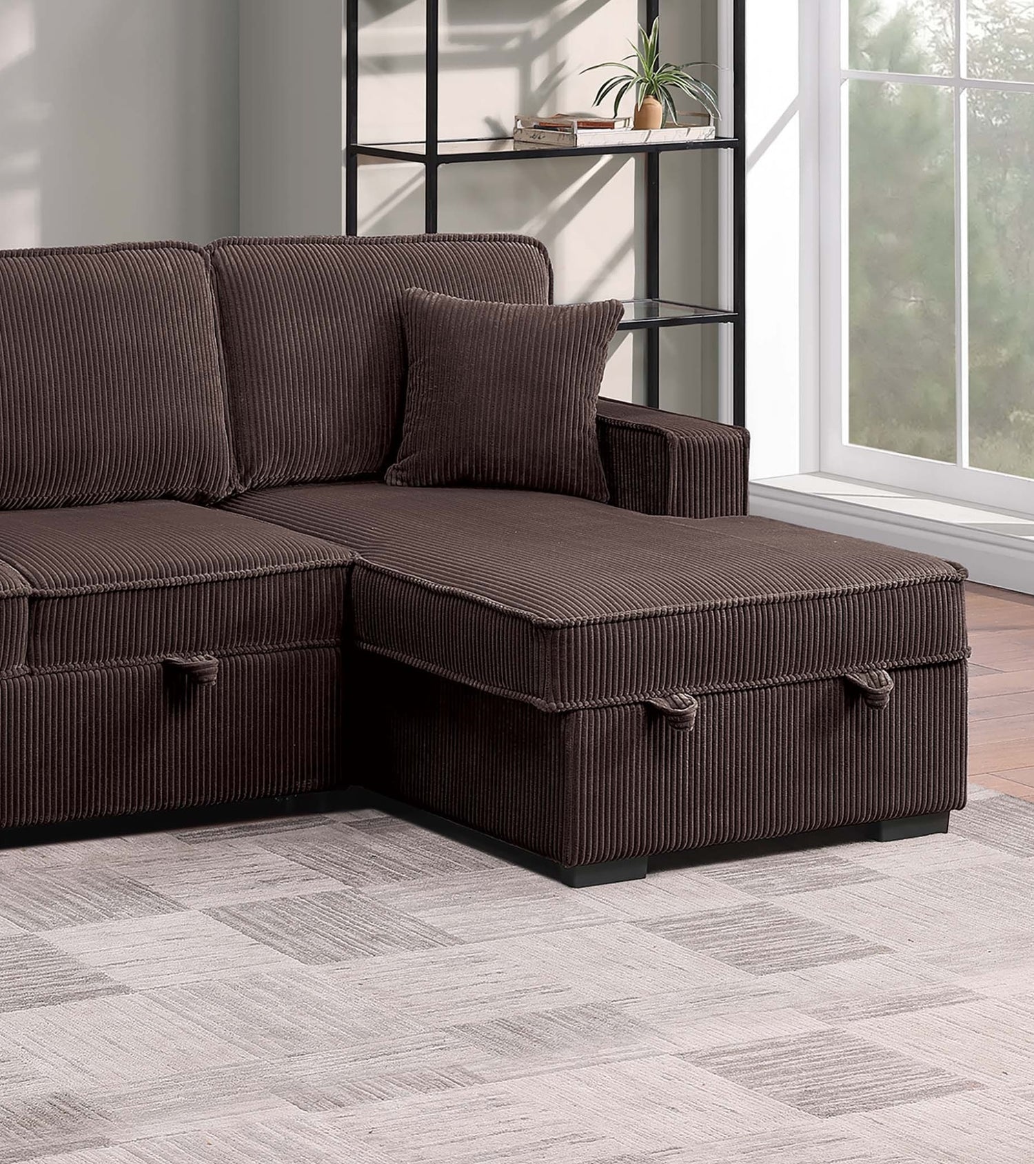 Chocolate Finish Modern Style Convertible Sectional 3pc Corduroy Fabric Upholstered Sleeper Sofa Two Storage Chaises Primary Living Room is available