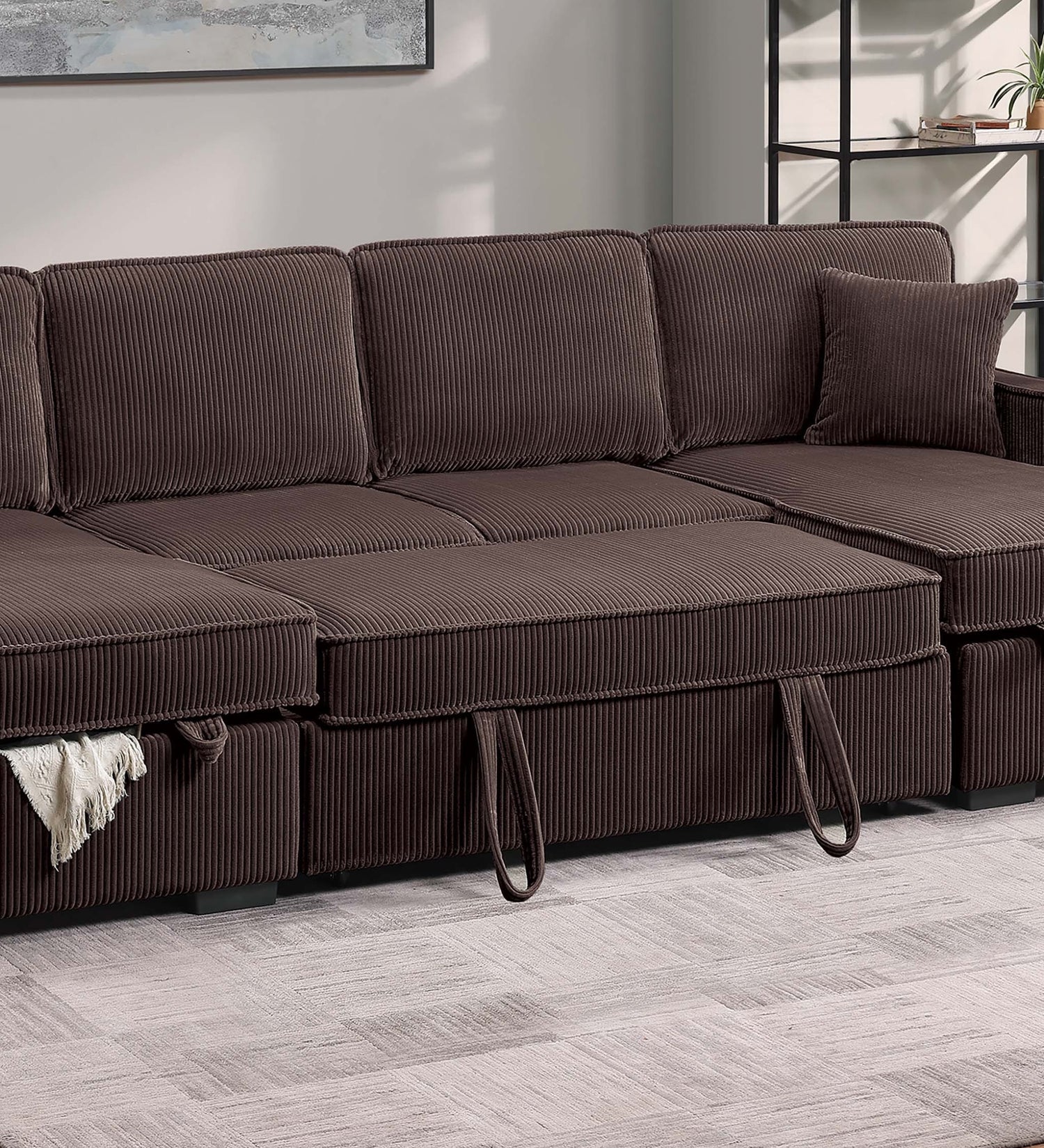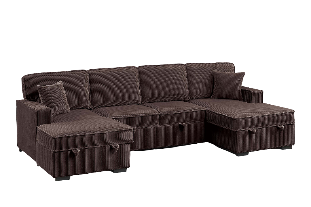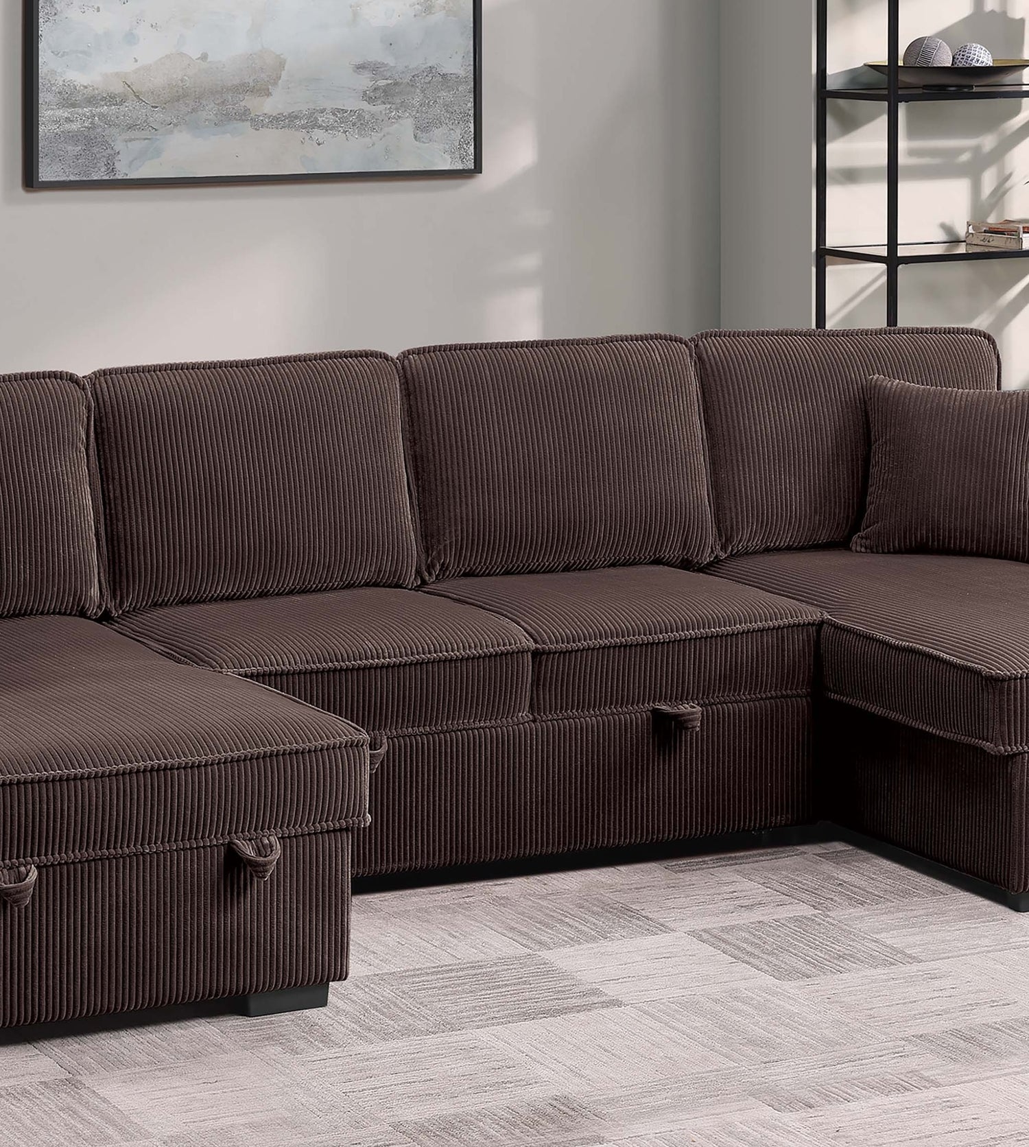 Chocolate Finish Modern Style Convertible Sectional 3pc Corduroy Fabric Upholstered Sleeper Sofa Two Storage Chaises Primary Living Room is available