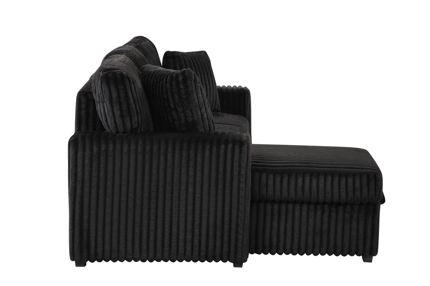 Plush Sectional Sofa W/ Pull Out Sleeper made with Velvet fabric- Black (CA Warehouse inventory)