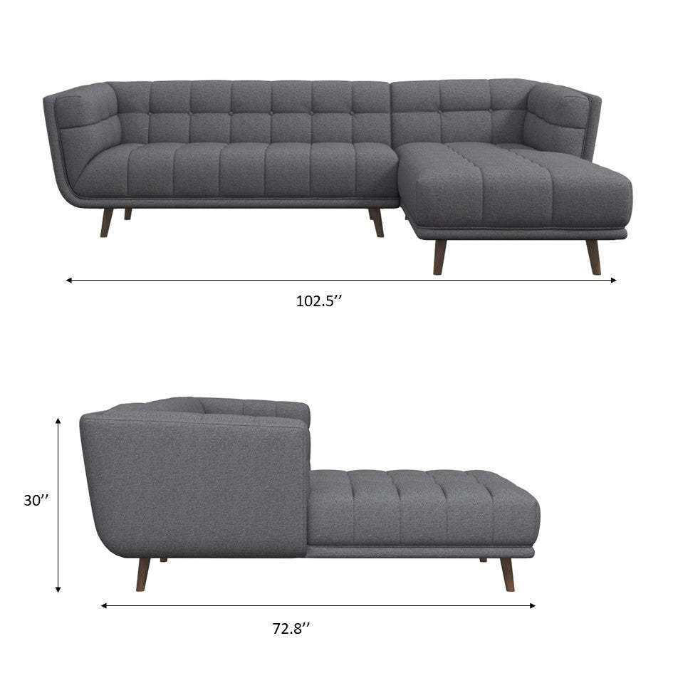 Addison Right Sectional Ash Grey Fabric Sofa
