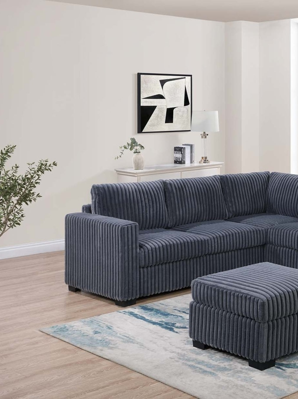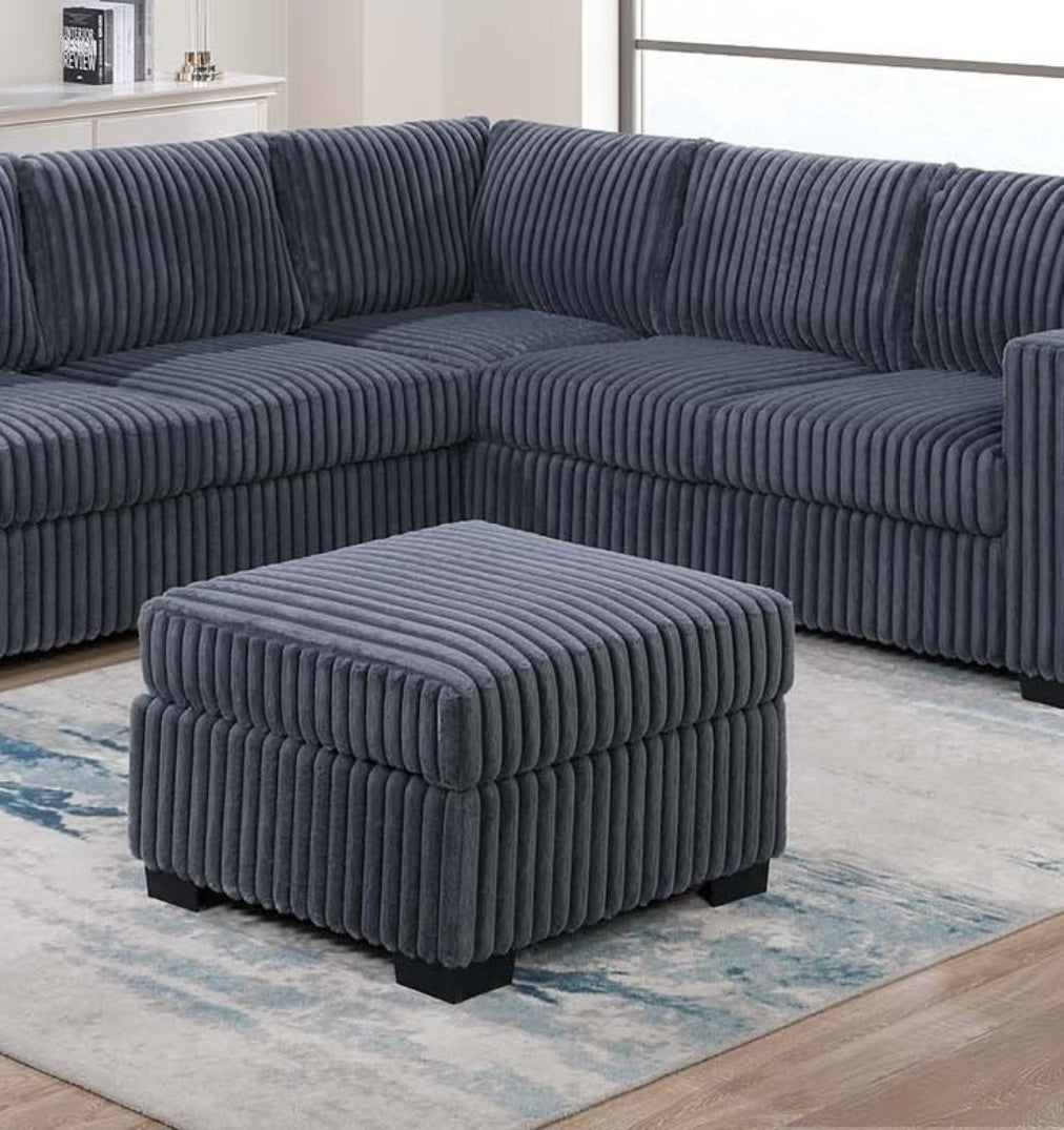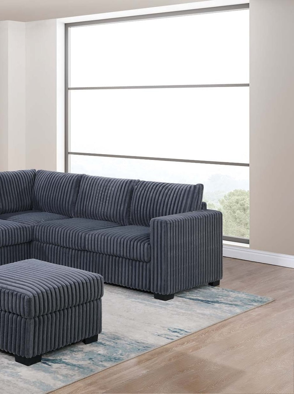 Beautiful 4-Piece Sectional Set W/ Ottoman Dark Gray One Arm Loveseat Corner Wedge Corduroy Upholstered Plush Couch
