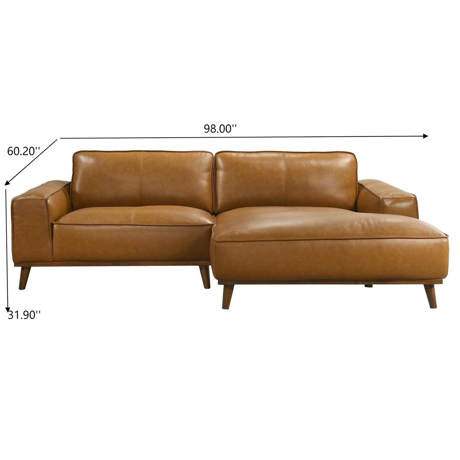 Kerrville Tan Leather Right Sectional Sofa with Mid-Century Modern Design, Genuine Top Grain Leather, Walnut-Finished Wood Legs, 98-Inch Width