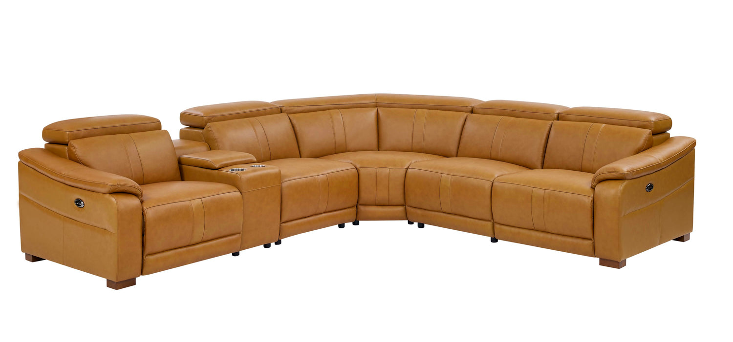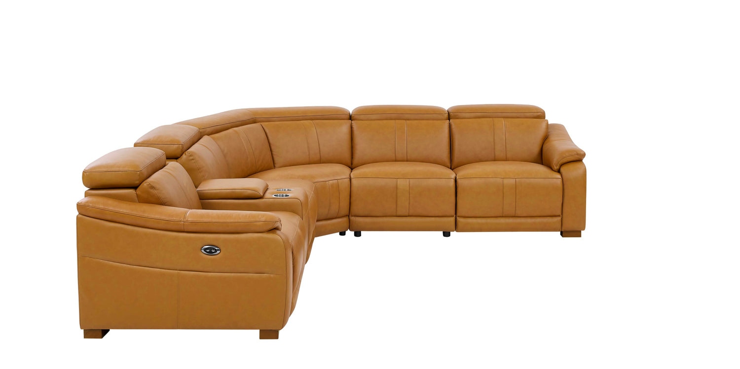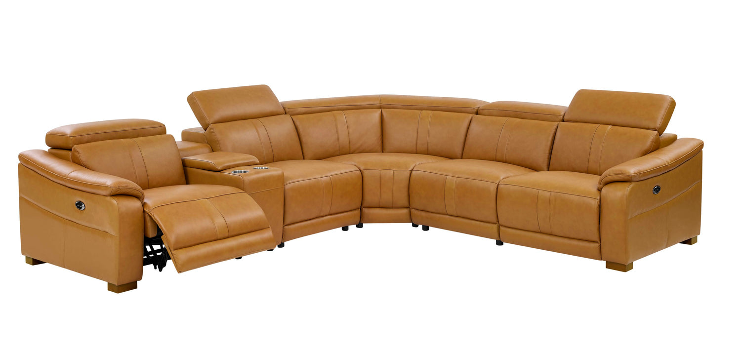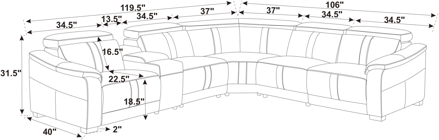 Leather Match Modular Sectional with Recliner Seat and Adjustable Headrest and Storage Console with Cup Holders