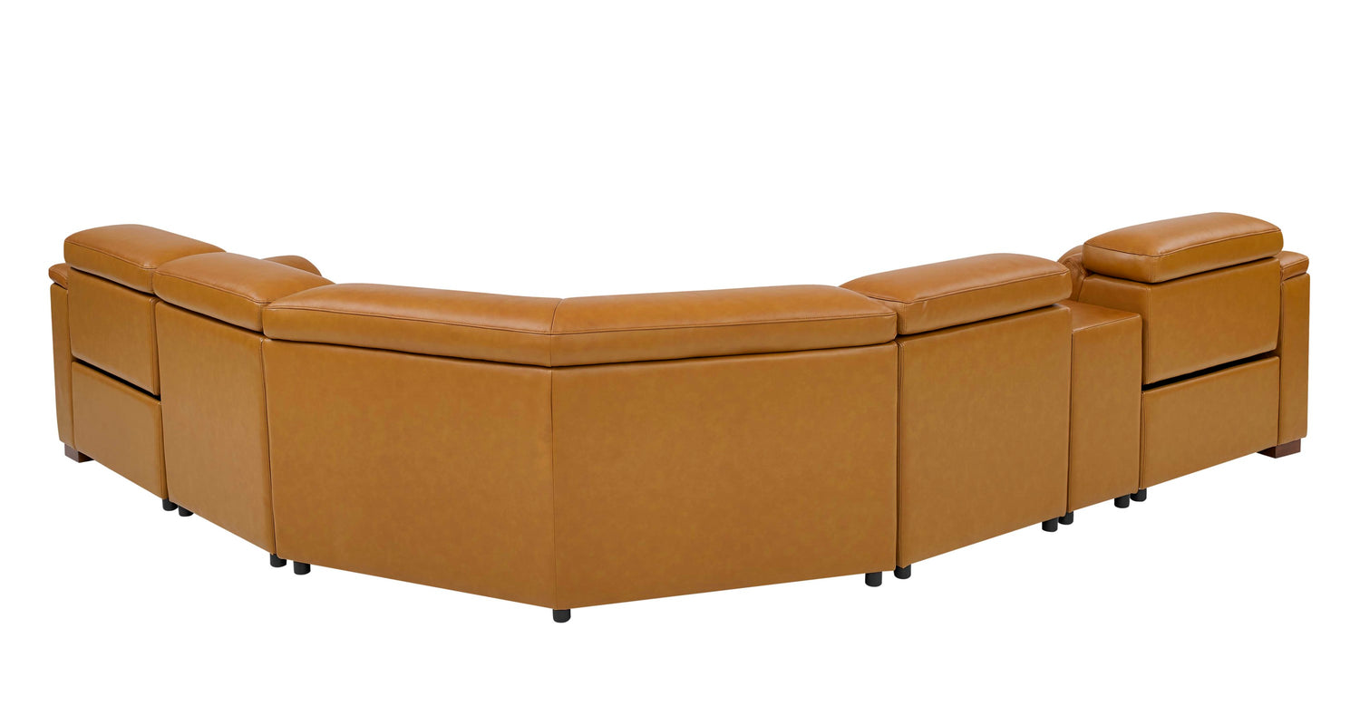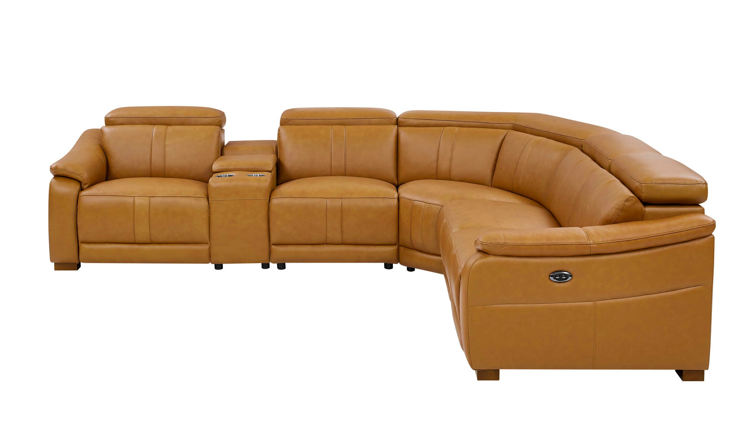 Leather Match Modular Sectional with Recliner Seat and Adjustable Headrest and Storage Console with Cup Holders is available