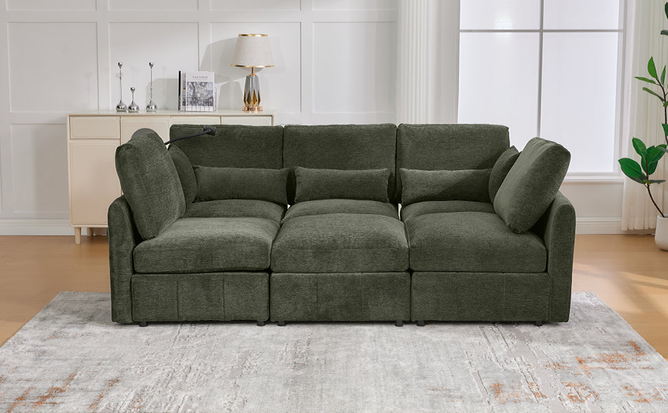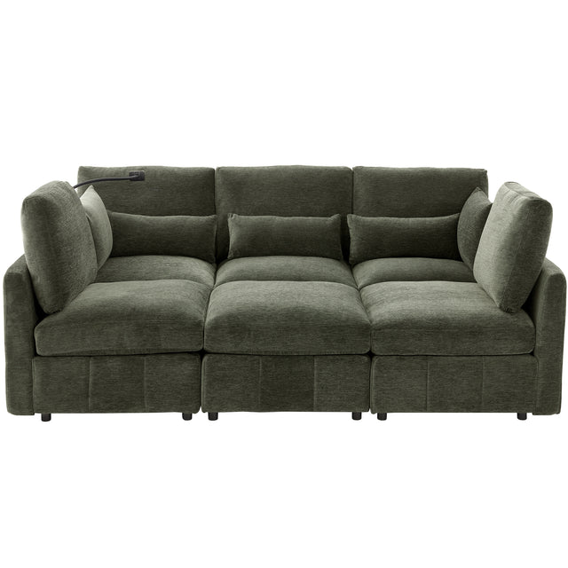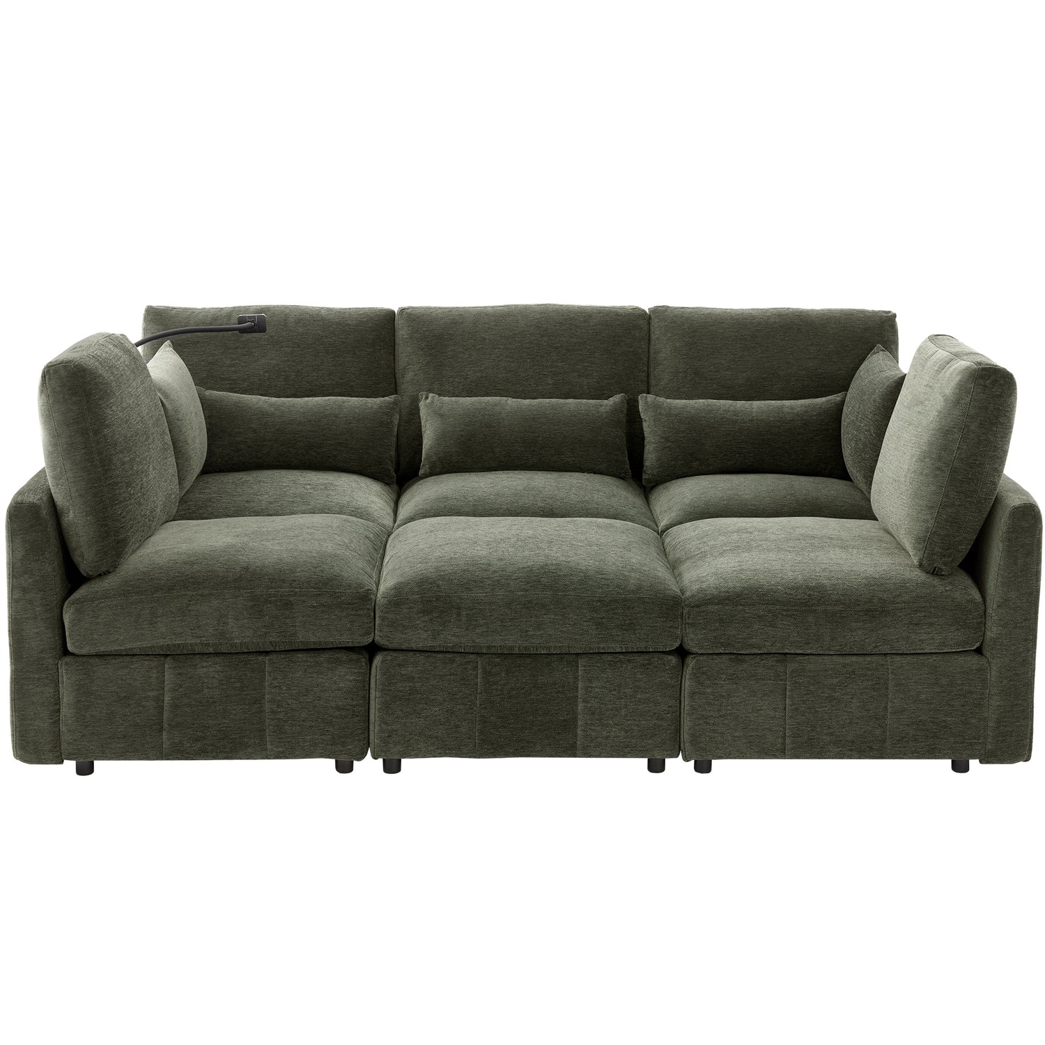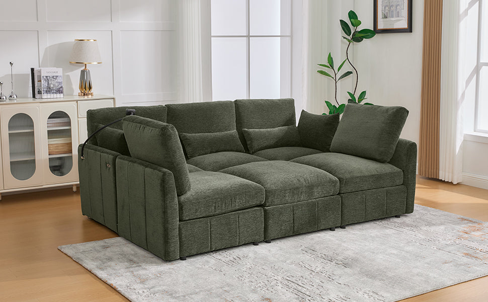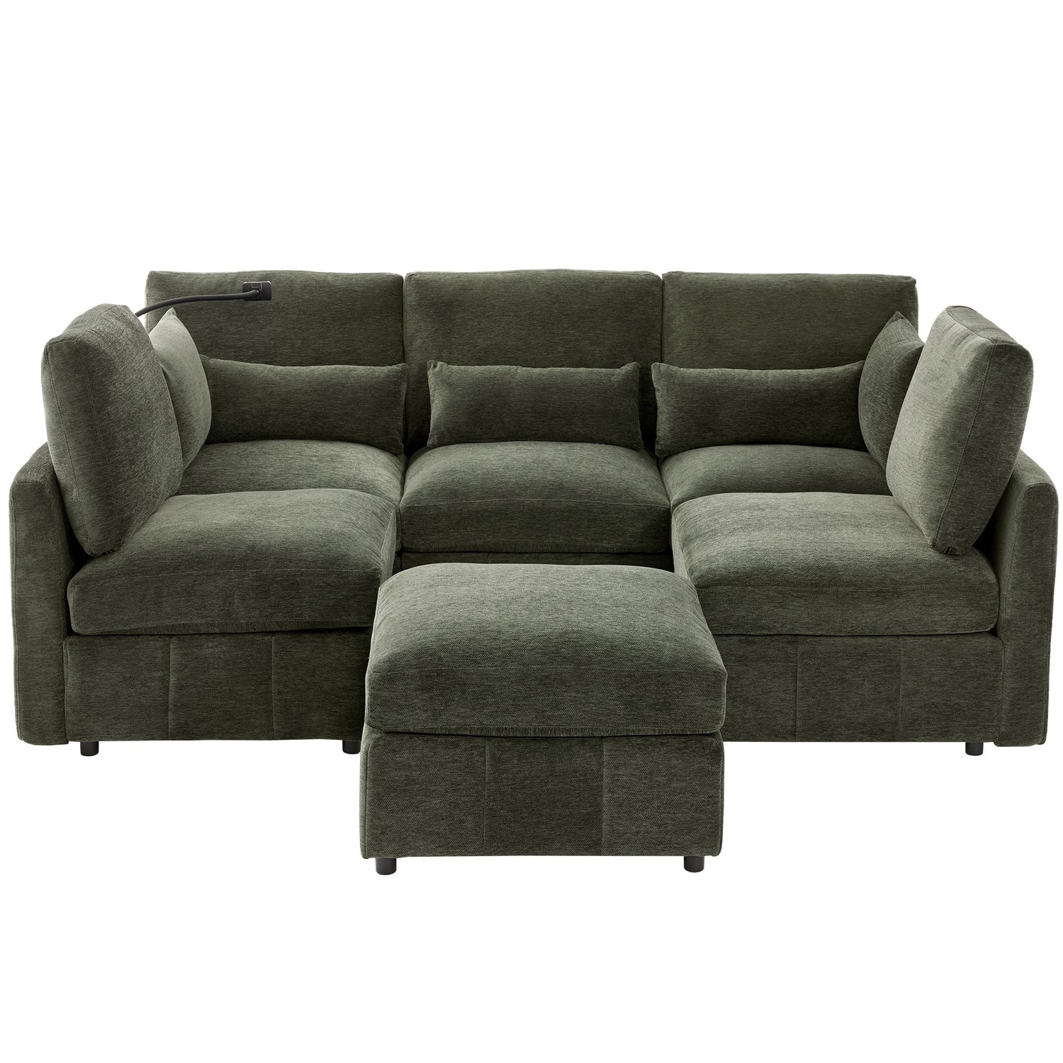 Modern Sectional Sofa Modular Sofa 85.4' U-shaped Sofa Couch Sofa Bed with Movable Ottoman, USB Ports, Phone Holder, Green Chenille