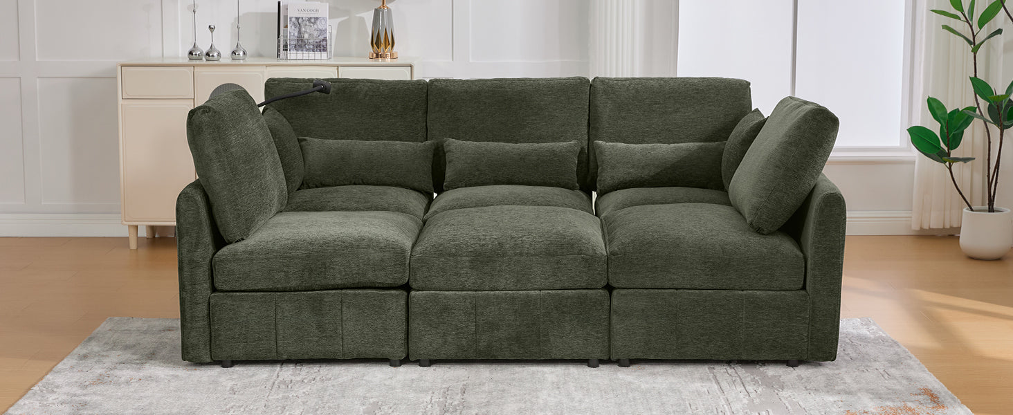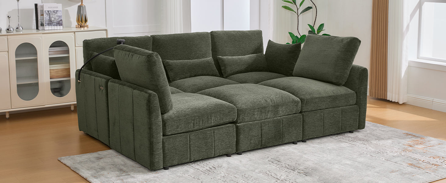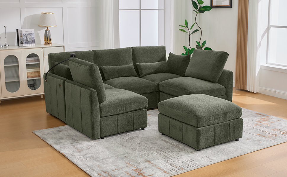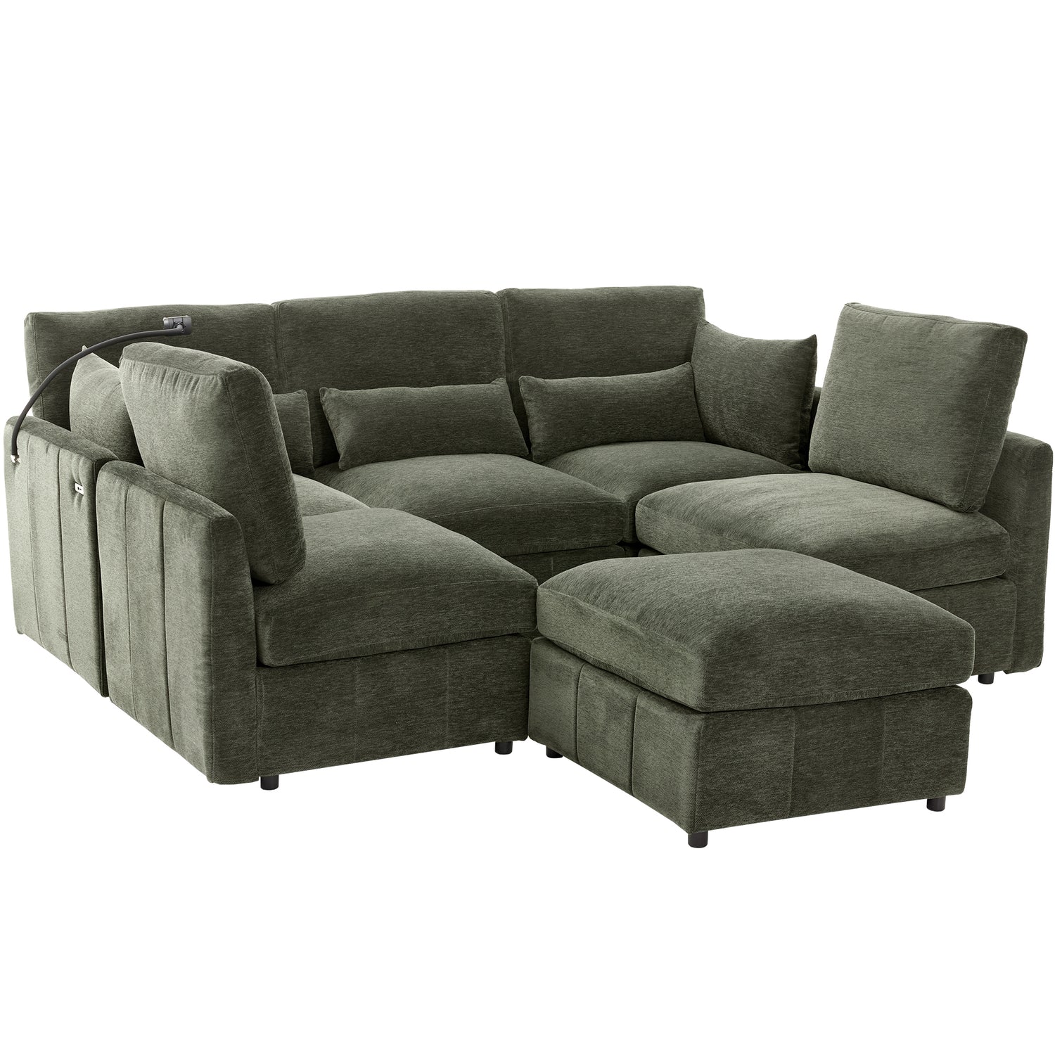 Modern Sectional Sofa Modular Sofa 85.4' U-shaped Sofa Couch Sofa Bed with Movable Ottoman, USB Ports, Phone Holder, Green Chenille is available