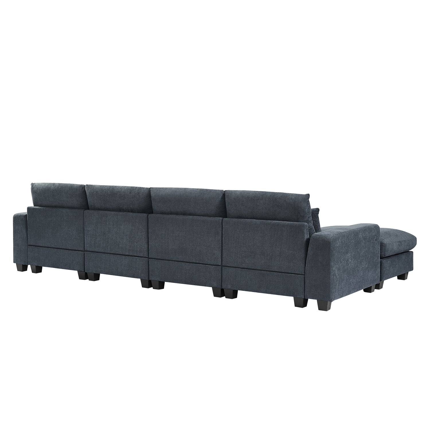 Transform your living room into a cozy spot for your family that is perfect for movie night curling up with a book or gathering with friends. This contemporary L-Shaped Couch set includes a 4-seat sofa, a movable ottoman and four comfortable pillows, capable of fitting up to 5 adults at an affordable price. This minimalist sofa features thick linen upholstery that is soft to the touch, resistant to fading and tough enough to ensure years of durability. High density and soft foam and feather filled cushions fill the seat and back so you can lean and get settled in comfort. This piece is an ideal choice for anyone looking to upgrade their living room with timeless personality.