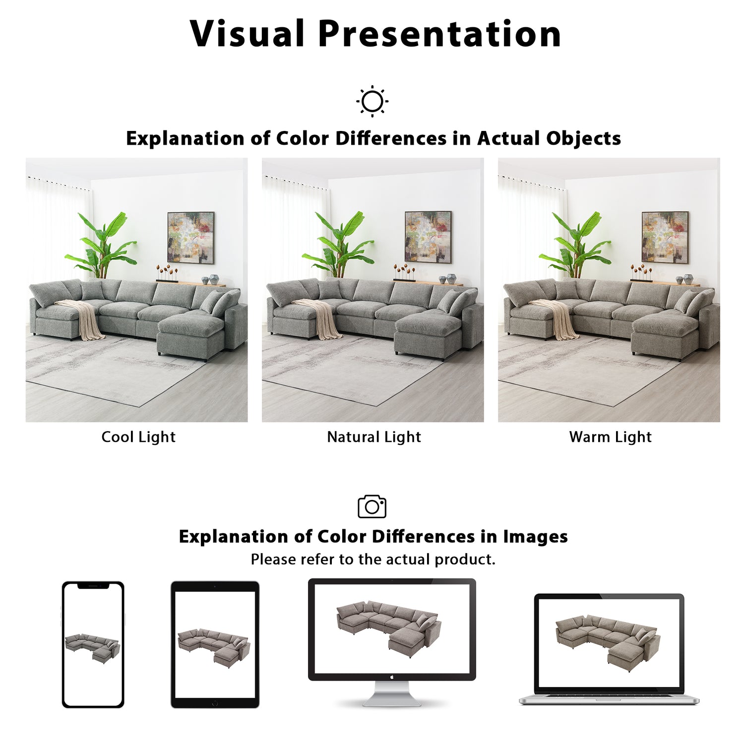Modern Modular Cloud Sofa Bed with Ottoman, Convertible U Shaped Sleeper, Chenille, 130*65 Inches