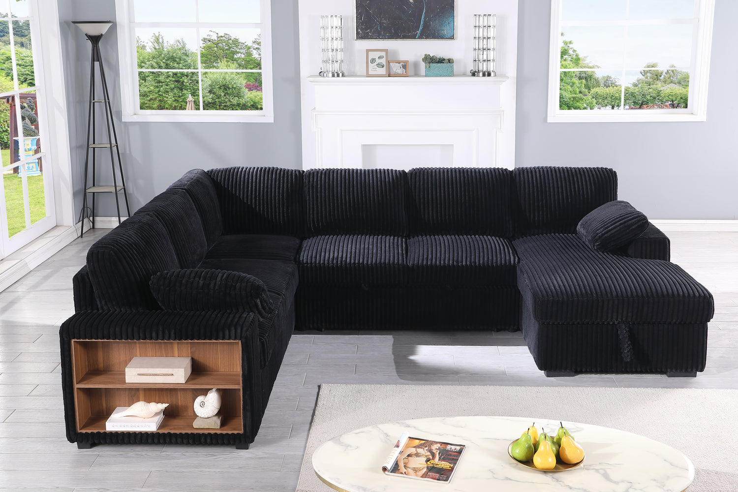 Sectional Sleeper Sofa with Pull Out Couch Bed Convertible Plush Corduroy Cloud Couch with Storage Chaise & Storage Armrests,Black(Plush Corduroy Fabric) is available
