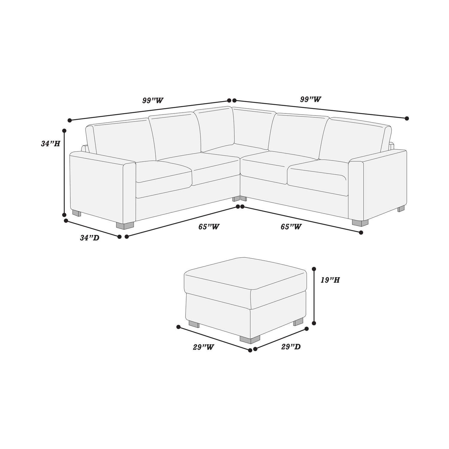 LAF/RAF Loveseat: 65' x 34' x 35' H