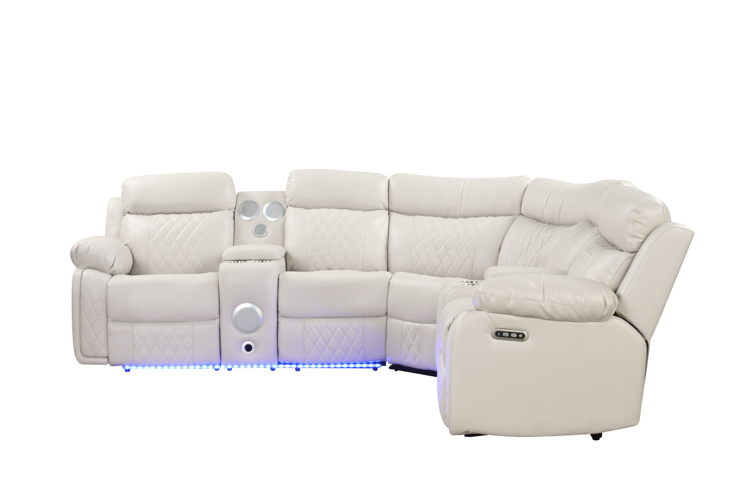 Lacrosse Modern Style power recliner sectional with Bluetooth speaker and LED made with wood & metal in Beige(CA INVENTORY)
