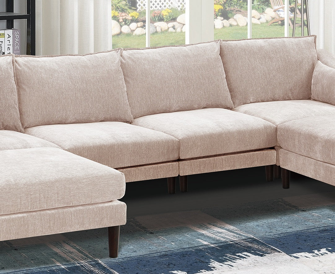 Product Description:- As the saying goes, variety is the spice of life. This 6-piece modular sectional echoes this message with contemporary furnishings for the creative and the person that wants options. Whether you’re looking to relax with a traditional sectional design or would like to break up your space with a loveseat, sofa, ottoman and/or an armless chair, this set offers a variety with modern luxury design. Relax with wide seating spaces and plush back support adding to the living space furniture that is not only visually appealing but offers real comfort. This set includes two of each of the following: Right/Left one-arm chair, armless chair, and ottoman. Available in a smooth suede-like fabric in blush and mineral. Listing Includes :- 6pcs Modular Sectional Set (2x Armless Chairs, 2x One Arm Chair And 2x Ottoman) Only. Dimensions - One Arm Chair :- 33' x 33' x 31'H Armless Chair :- 33' x 27' x 31'H Ottoman :- 32' x 27' x 17'H Overall Sectional Dimensions :- 120' x 60' x 31'H Simple assembly requires.
