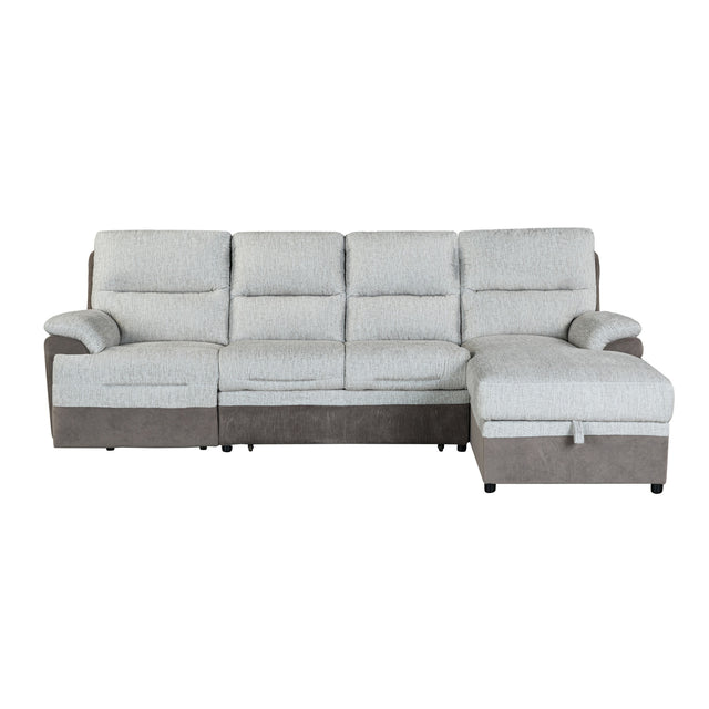 Contemporary KIA Beige/Brown Sectional Sofa with USB and Power Recline in 100% Polyester Fabric