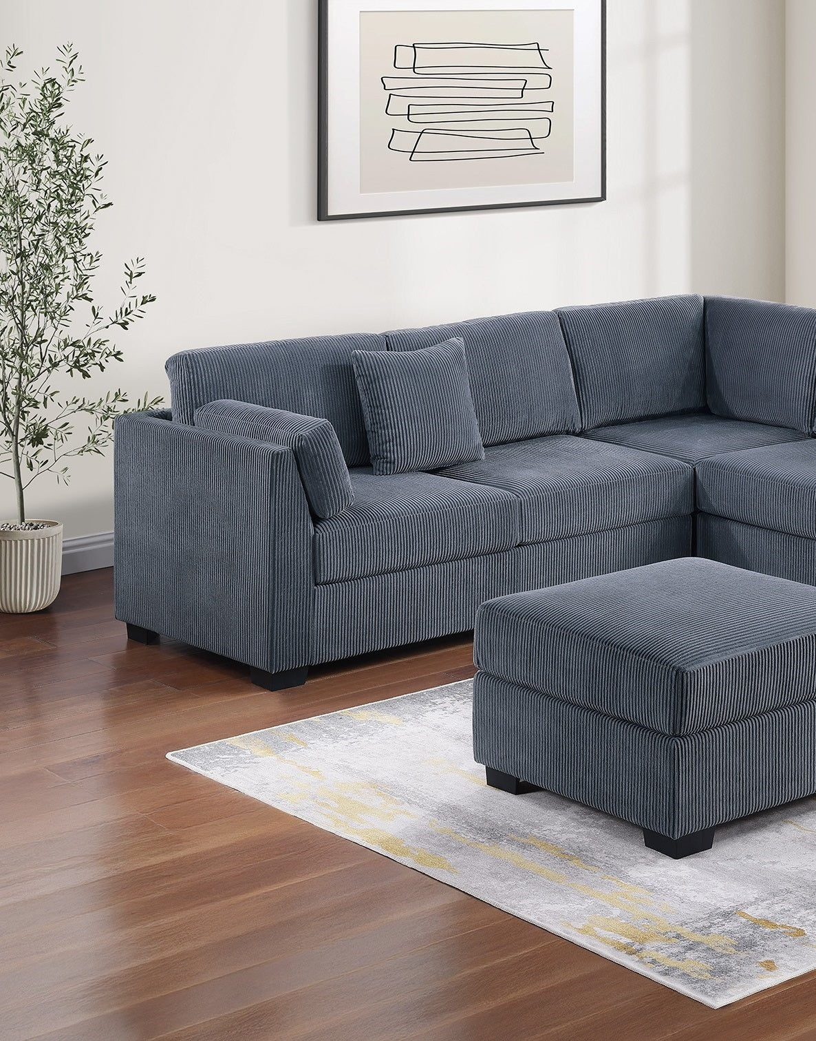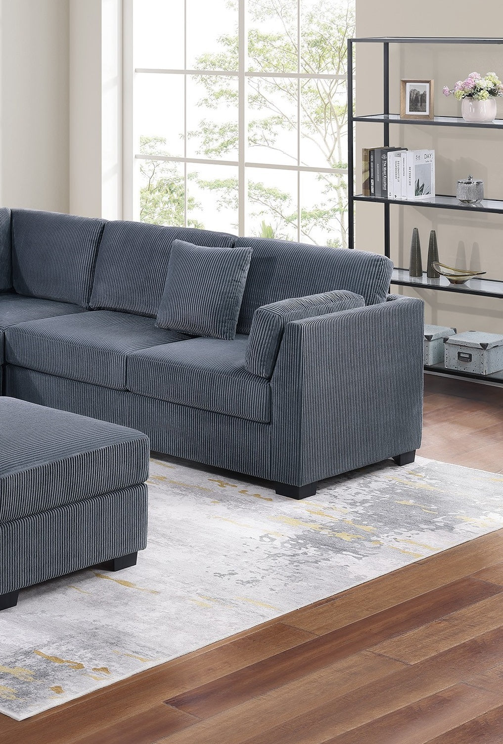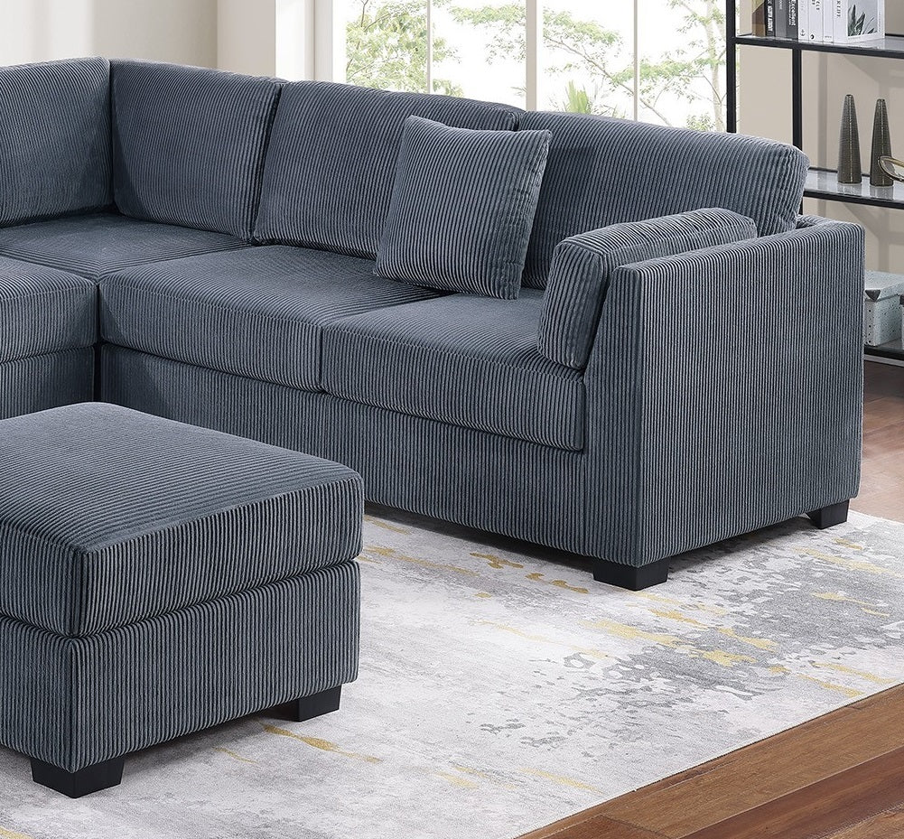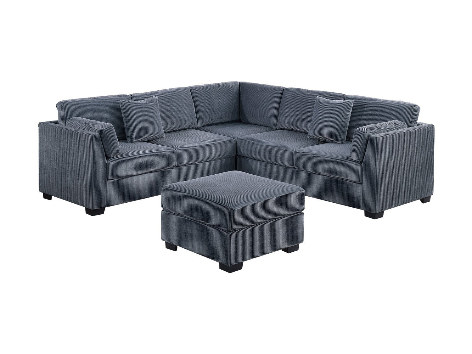 L-Sectional RAF/LAF One Arm-Loveseat Corner Wedge Cocktail Ottoman Dark Gray Corduroy Upholstered Pillows 4pc Sectional Sofa Set is available
