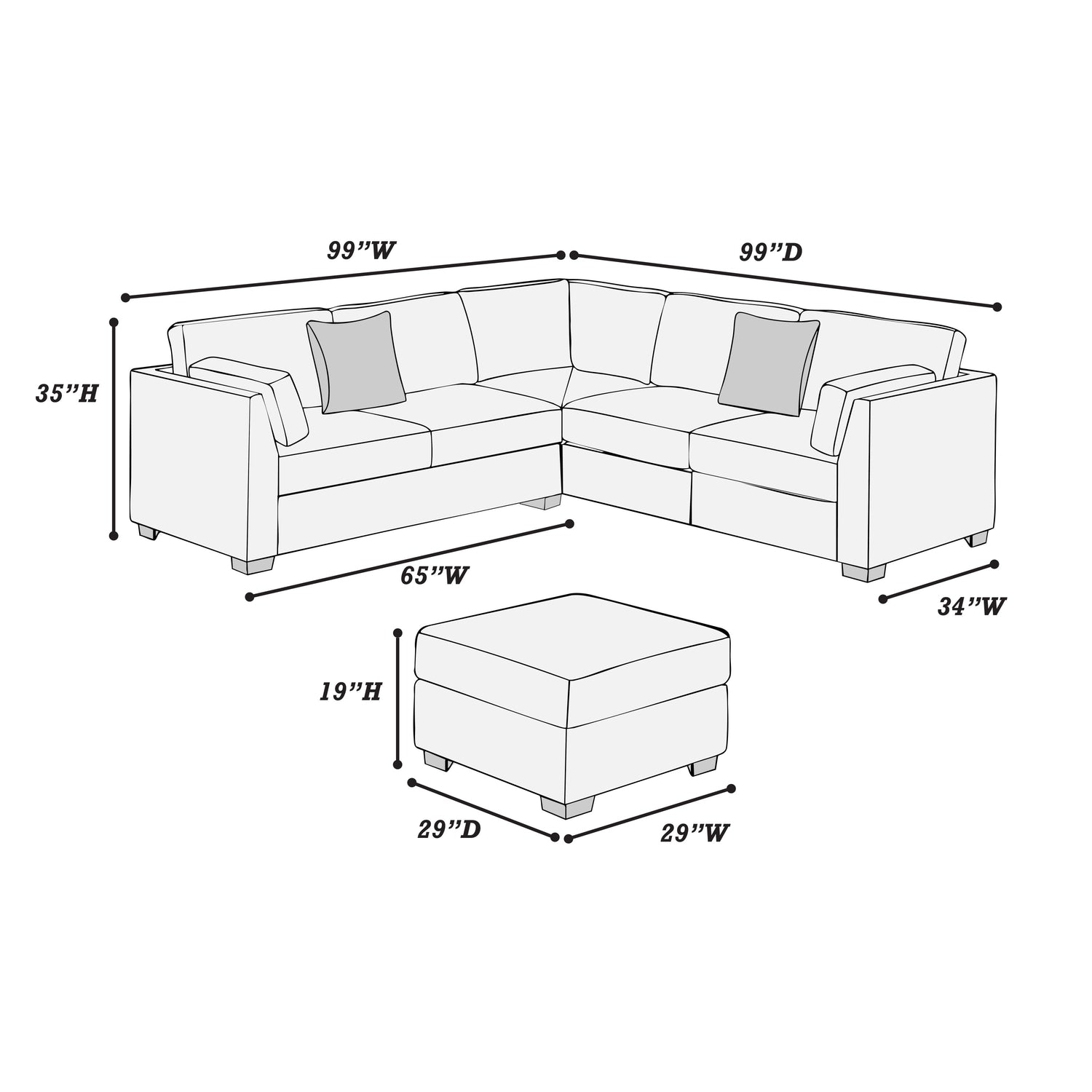 - Listing Includes - 4pc Sectional Sofa Set (RAF/LAF One-Arm Loveseat, Corner Wedge And Cocktail Ottoman ) Only.