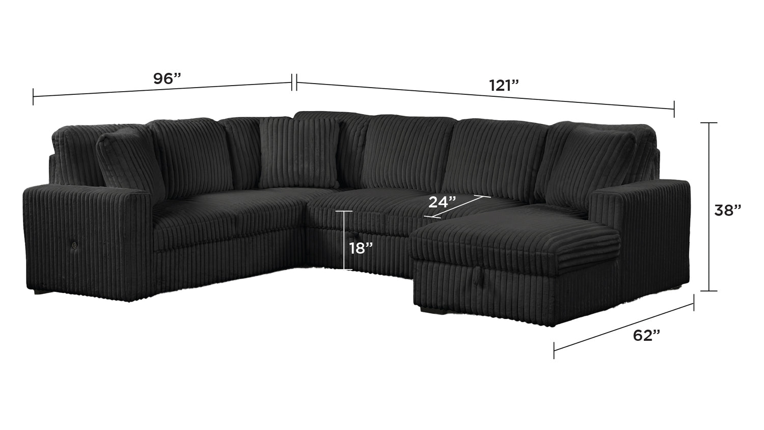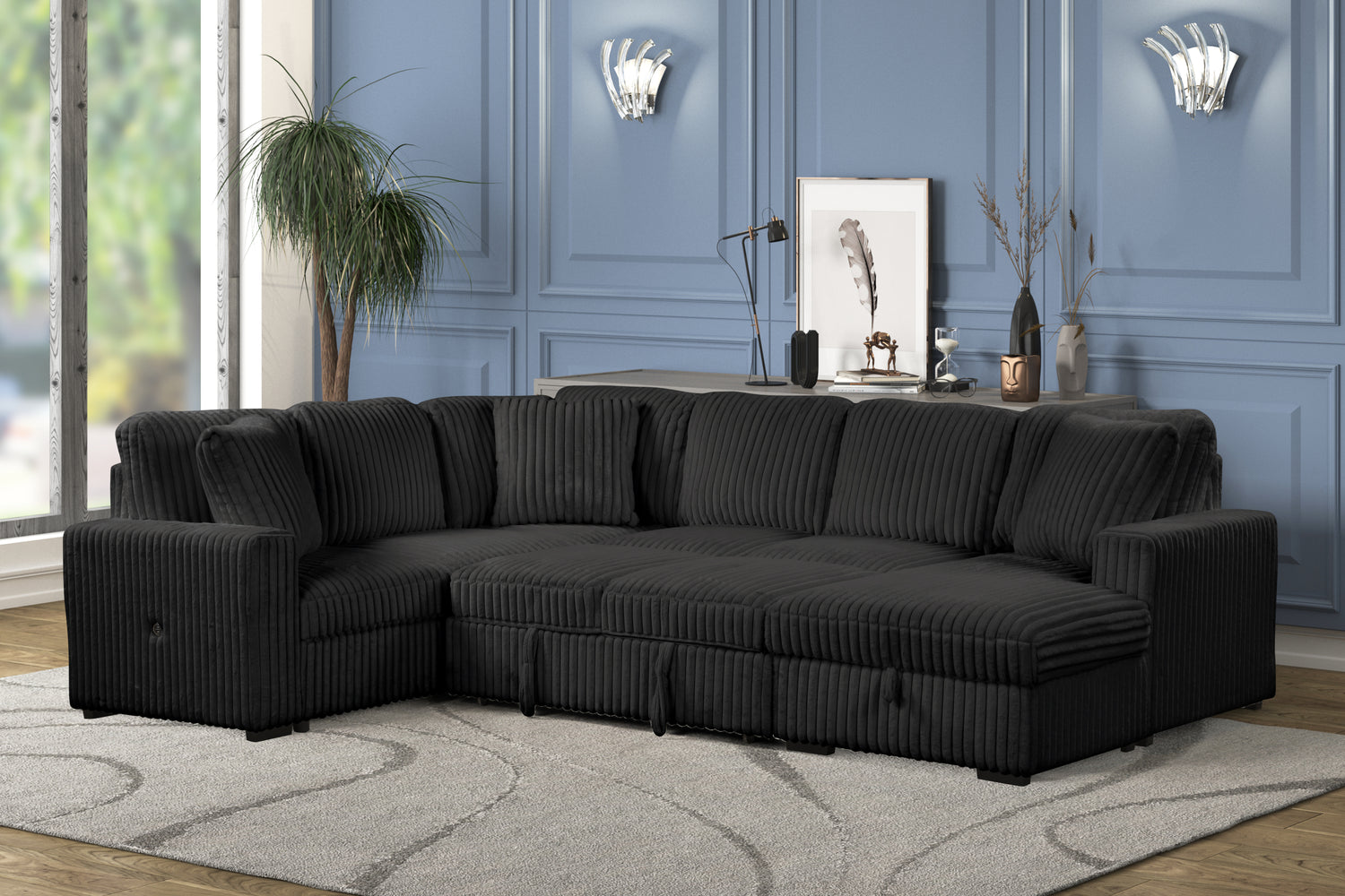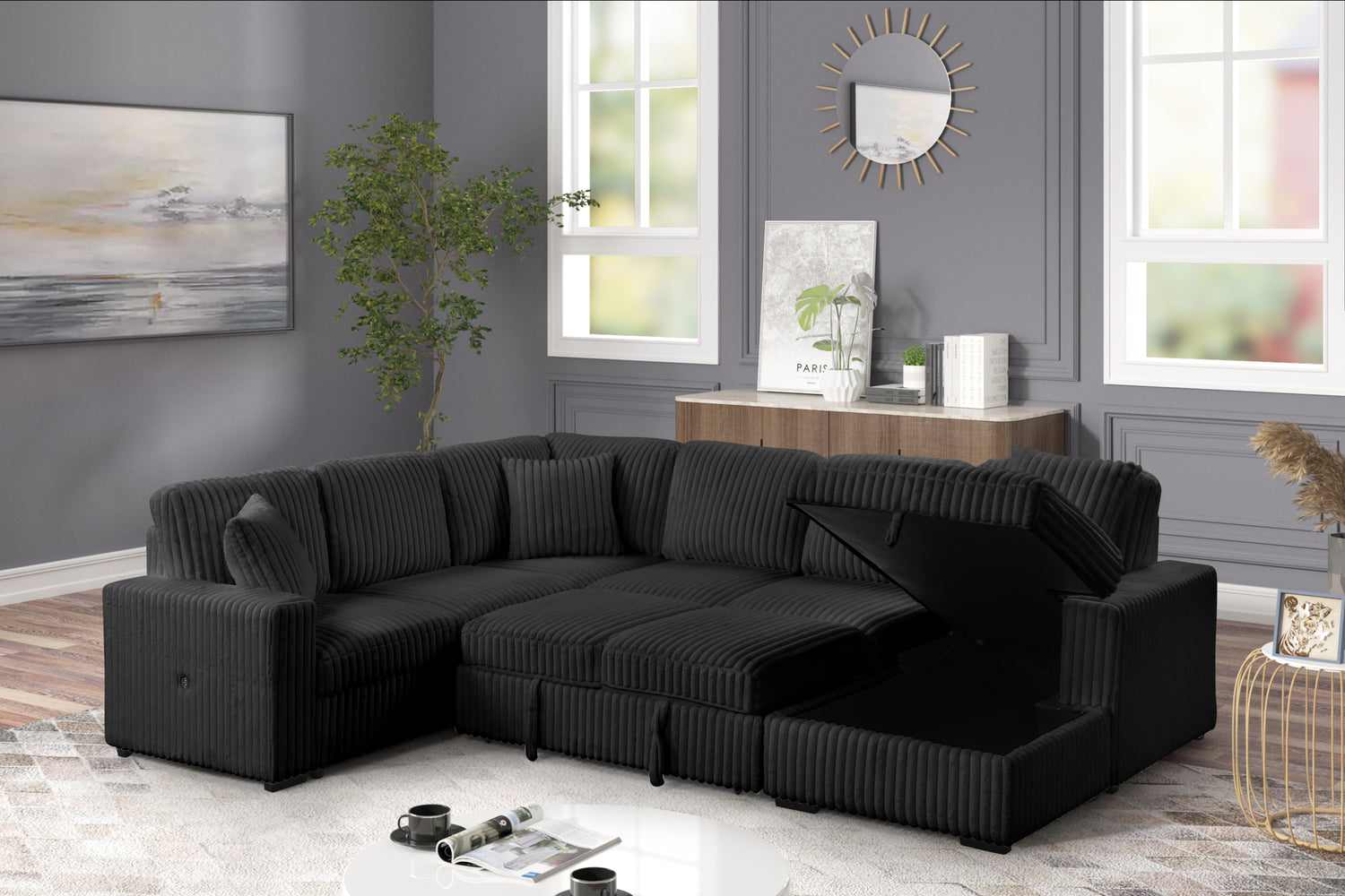 Grande Modern Style Sectional Sofa with USB-C, Sleeper Function & Storage Made with wood in Black (CA INVENTORY)
