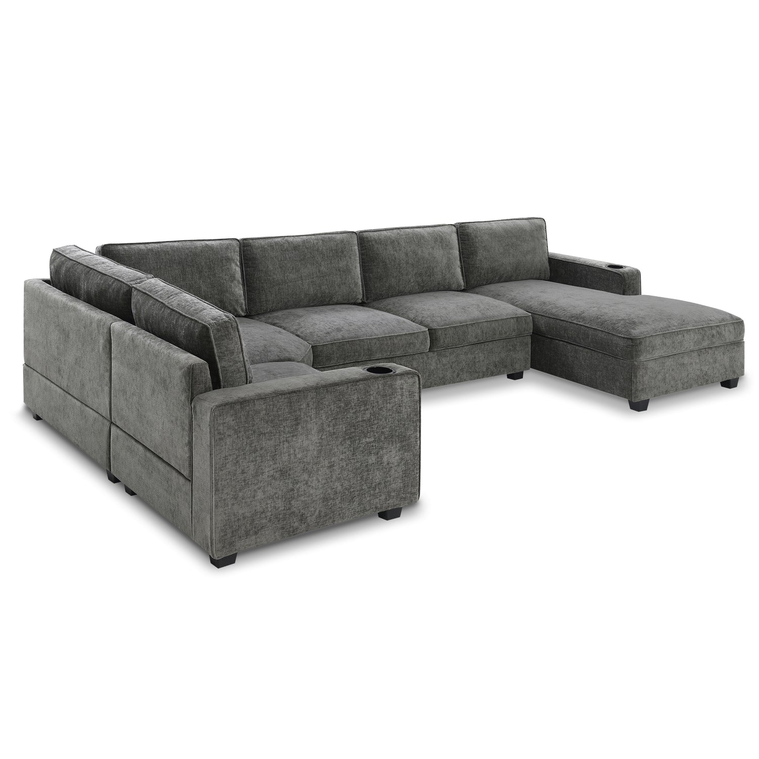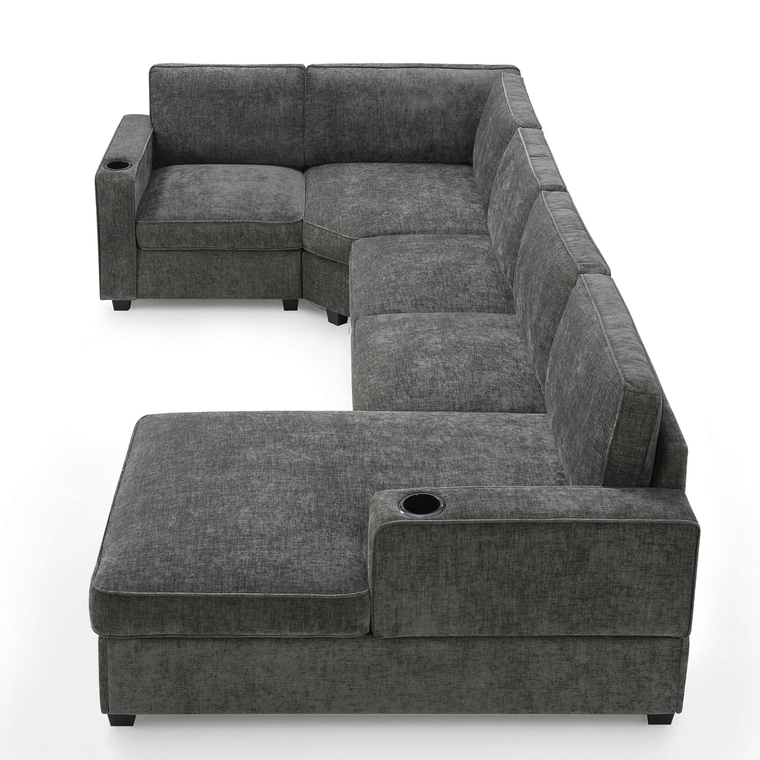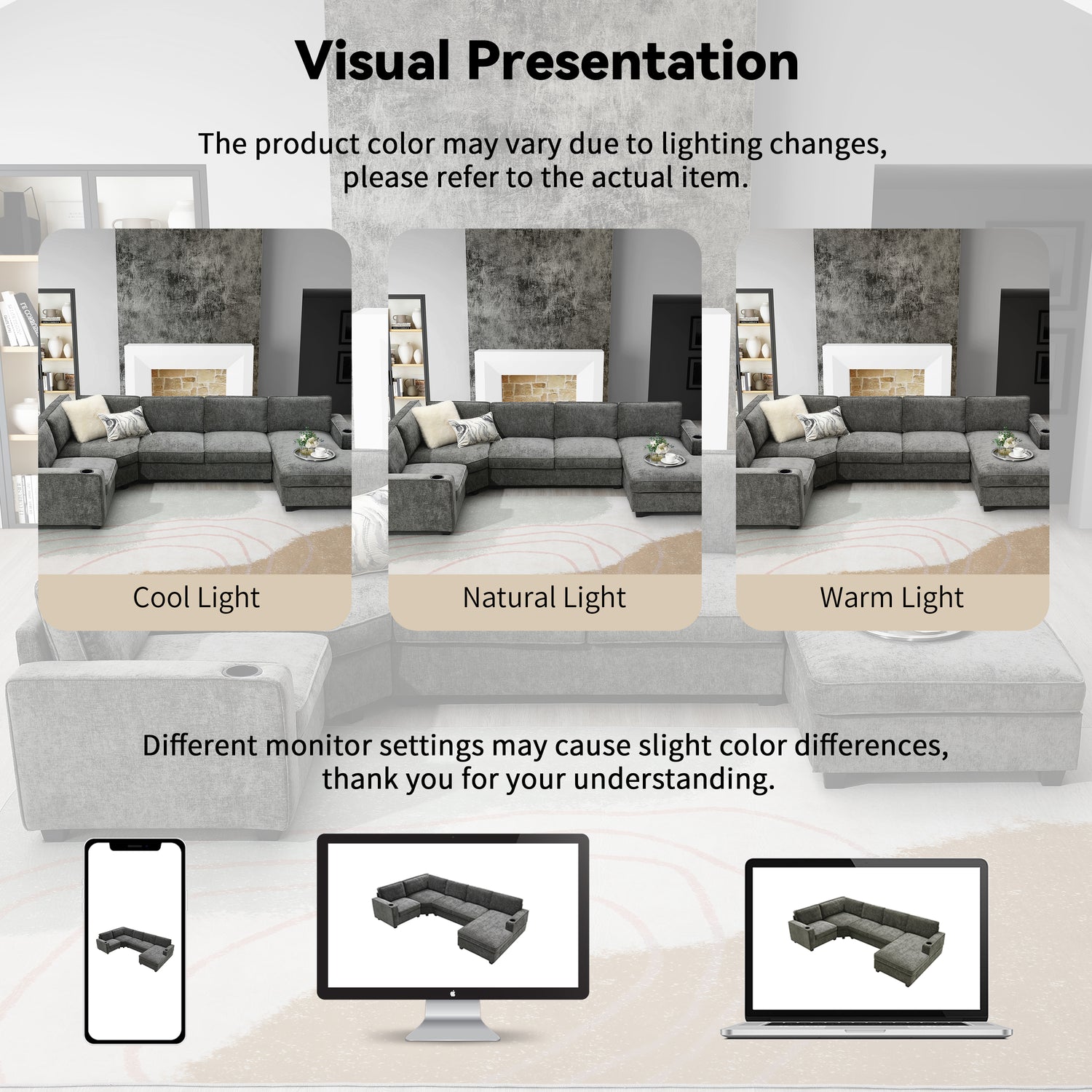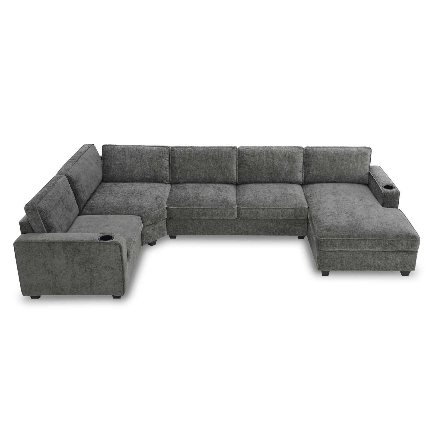 119' U-Shaped Sectional Sofa, 6 Seat Chenille Corner Couch Set with Cup Holders, Oversized Chaise Lounge, Irregular Corner, Deep and Wide Seat, Comfy Sofa for Living Room&Apartment, 2 Colors is available