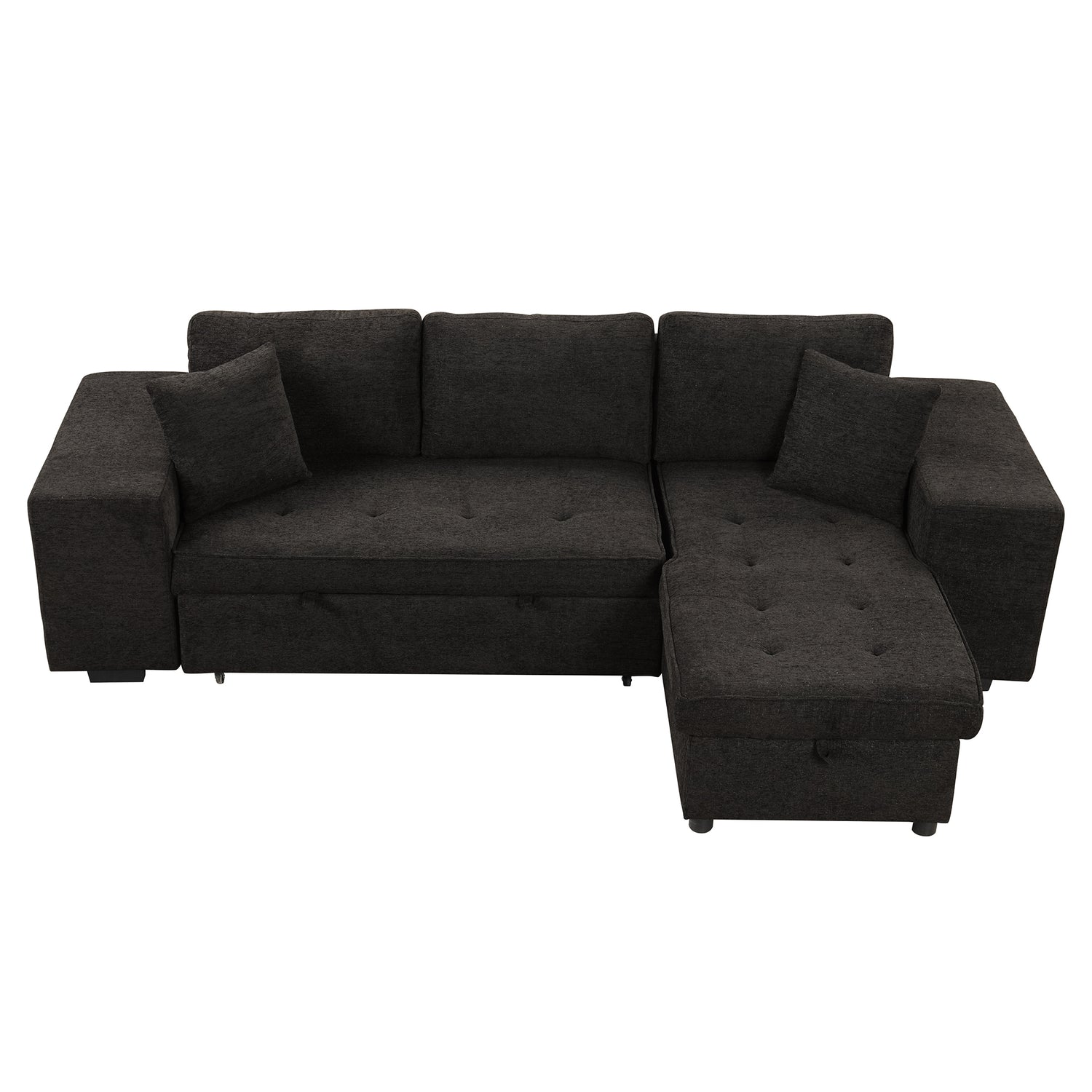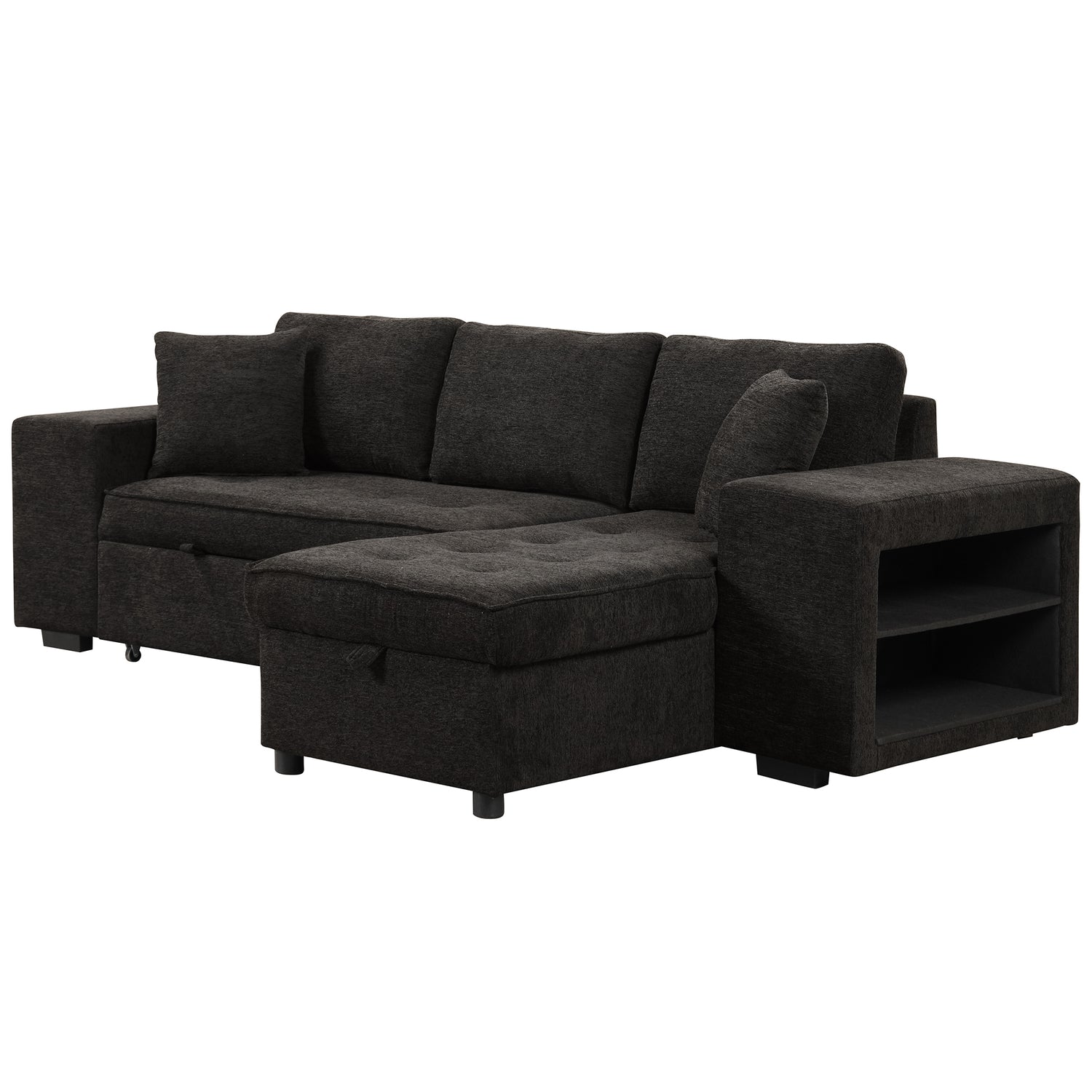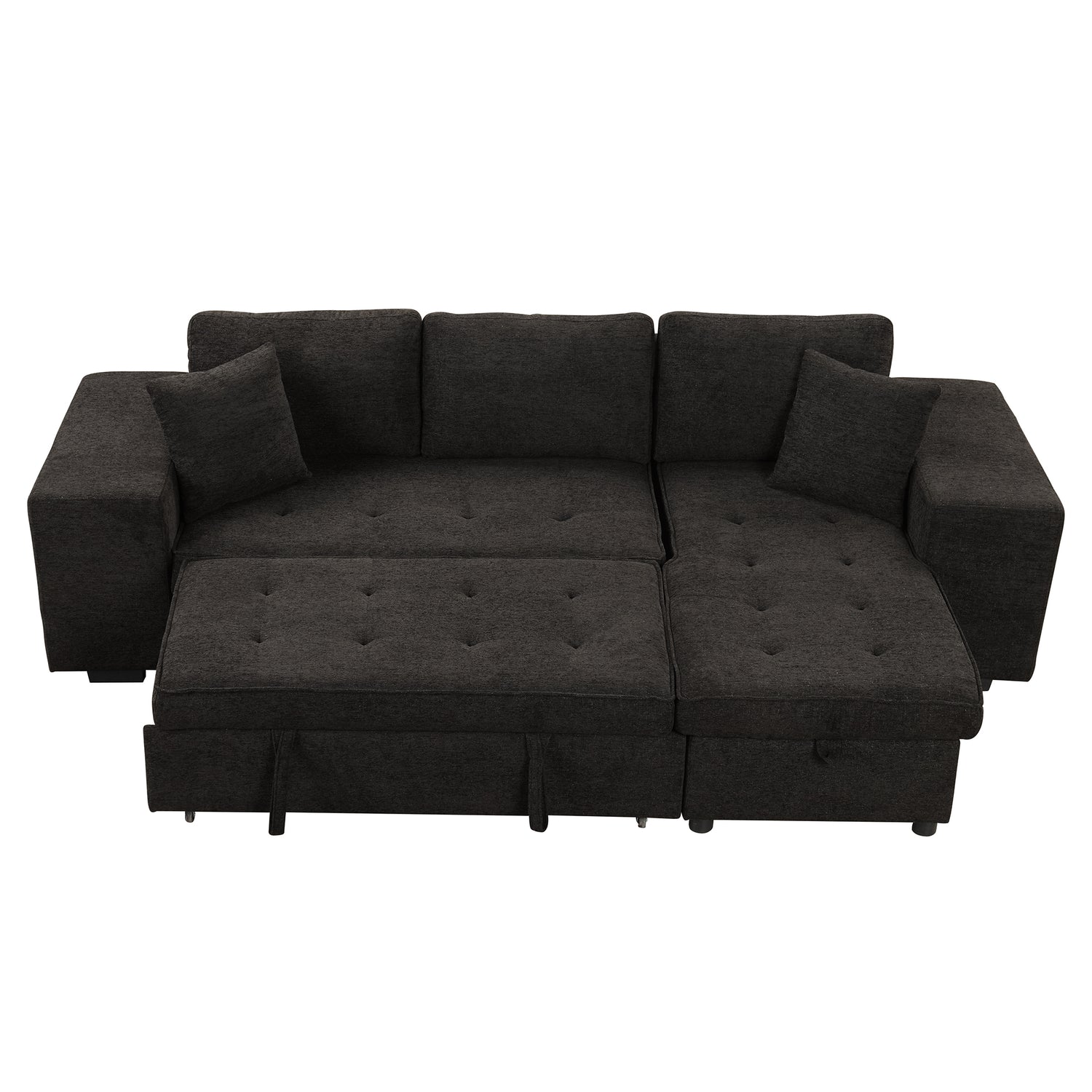 Modern L-Shape 3 Seat Reversible Sectional Couch with Pull Out Sleeper Sofa, Storage Chaise, 2 Stools, Charcoal Grey, Linen Chenille is available