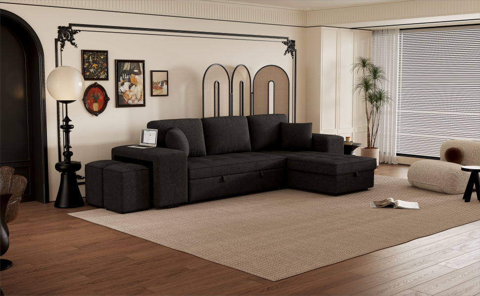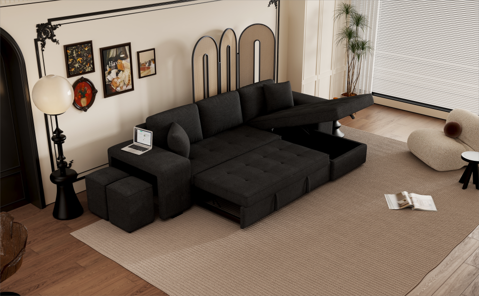 - Practical Sleeper Sofa Bed - L-shape sofa can be easily converted into a bed. The equipped portable handle with the assistance of the bottom pulley device to quickly complete the bed transformation. If you often have overnight guests, then this could be a great solution.