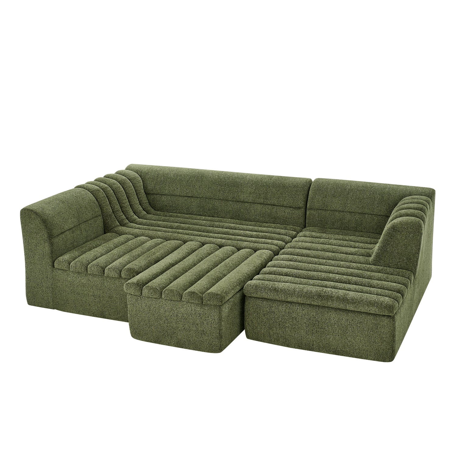 - Modular Sectional Sofa: Discover the adaptability of our minimalist modular sofa, designed for flexible configurations to fit your lifestyle. This U-shaped sectional set is composed of four pieces, maximizing space efficiency when placed against a wall. Whether used as a sofa or sofa bed, it offers endless layout options to suit your comfort and style