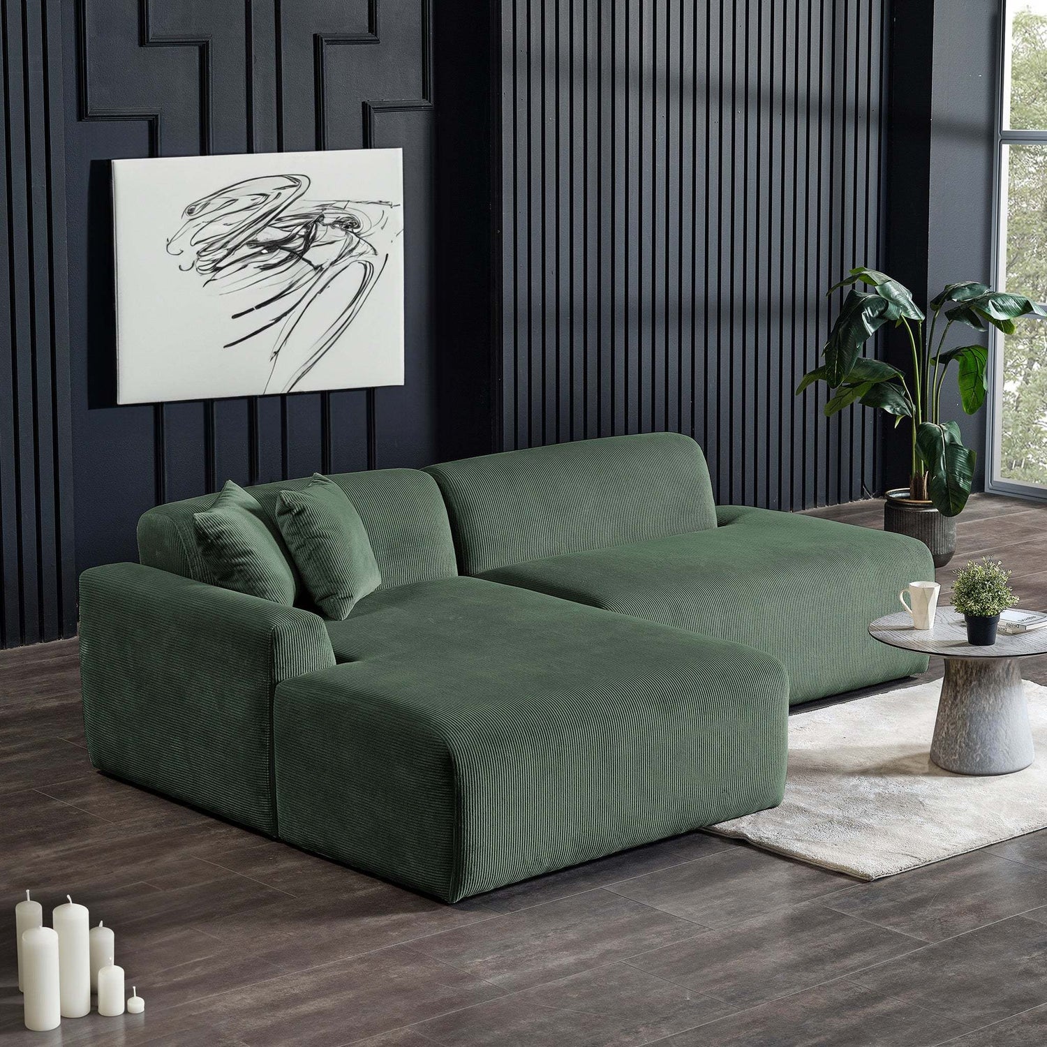 Mar Sectional Green Corduroy Sofa (Left Facing)
