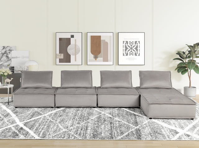 Anna 160' Light Gray Velvet 5 Pc Sectional Sofa Ottoman