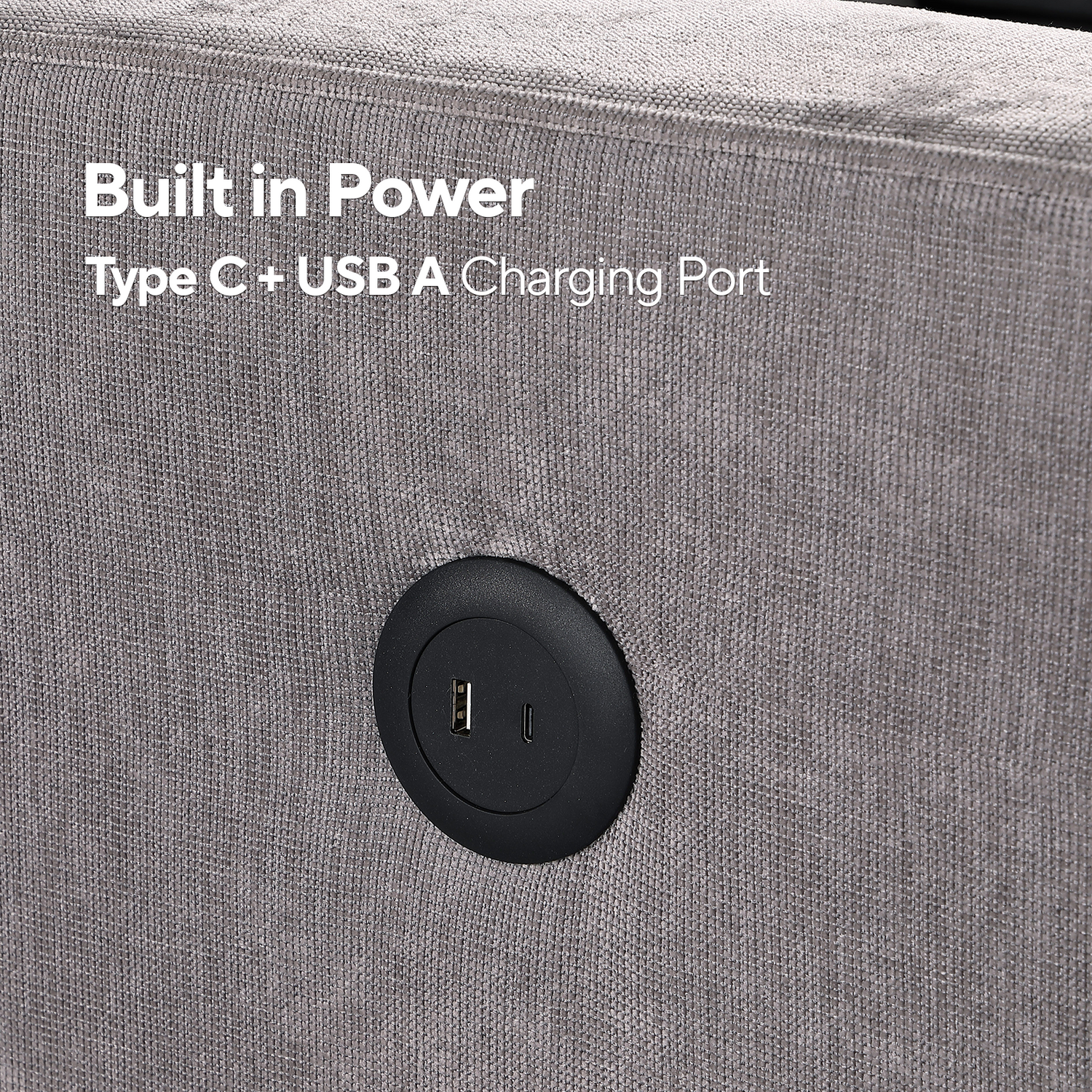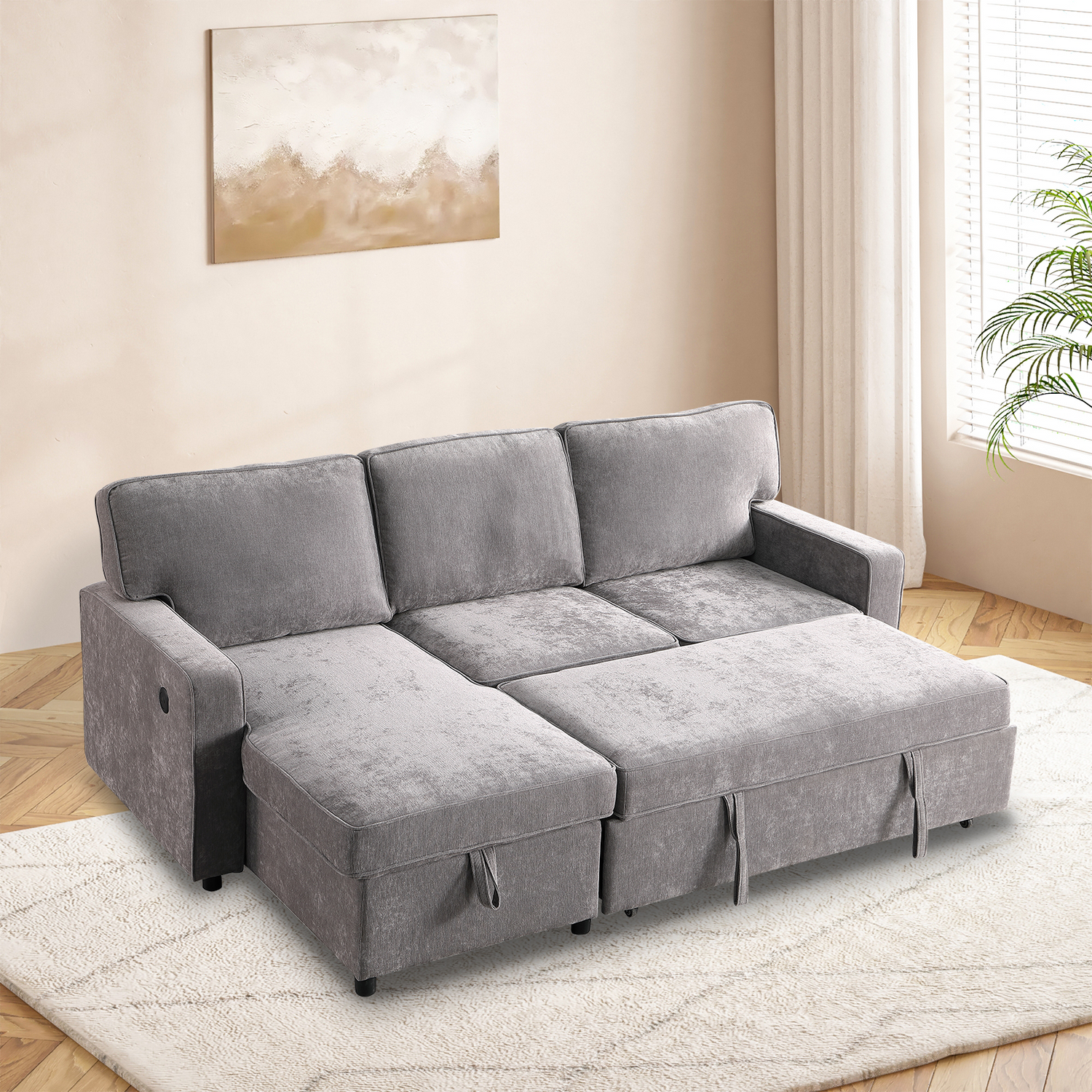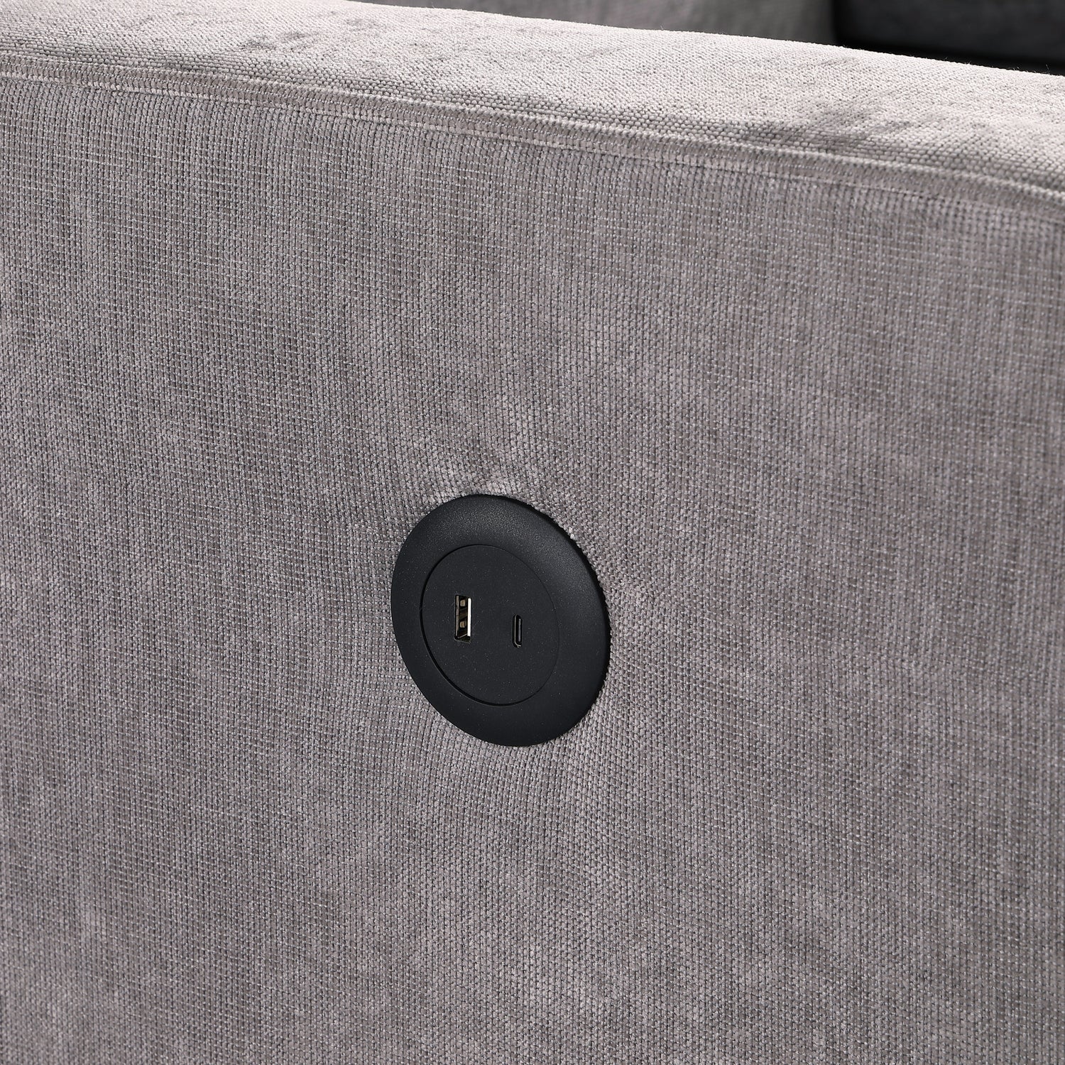 Upholstery Sleeper GREY Sectional Sofa with Storage Space, USB port, 2 cup holders on Back Cushions