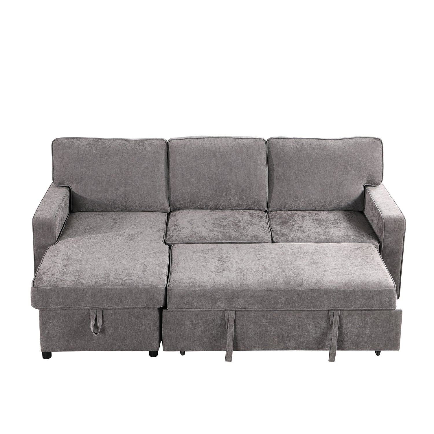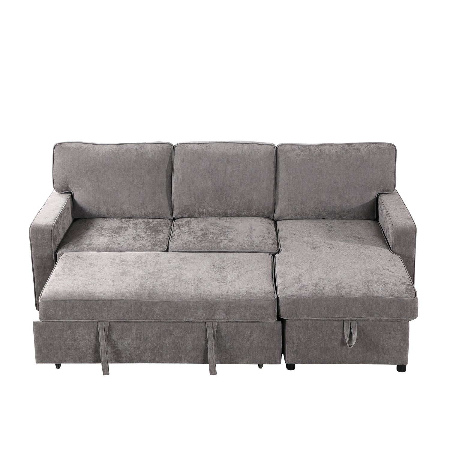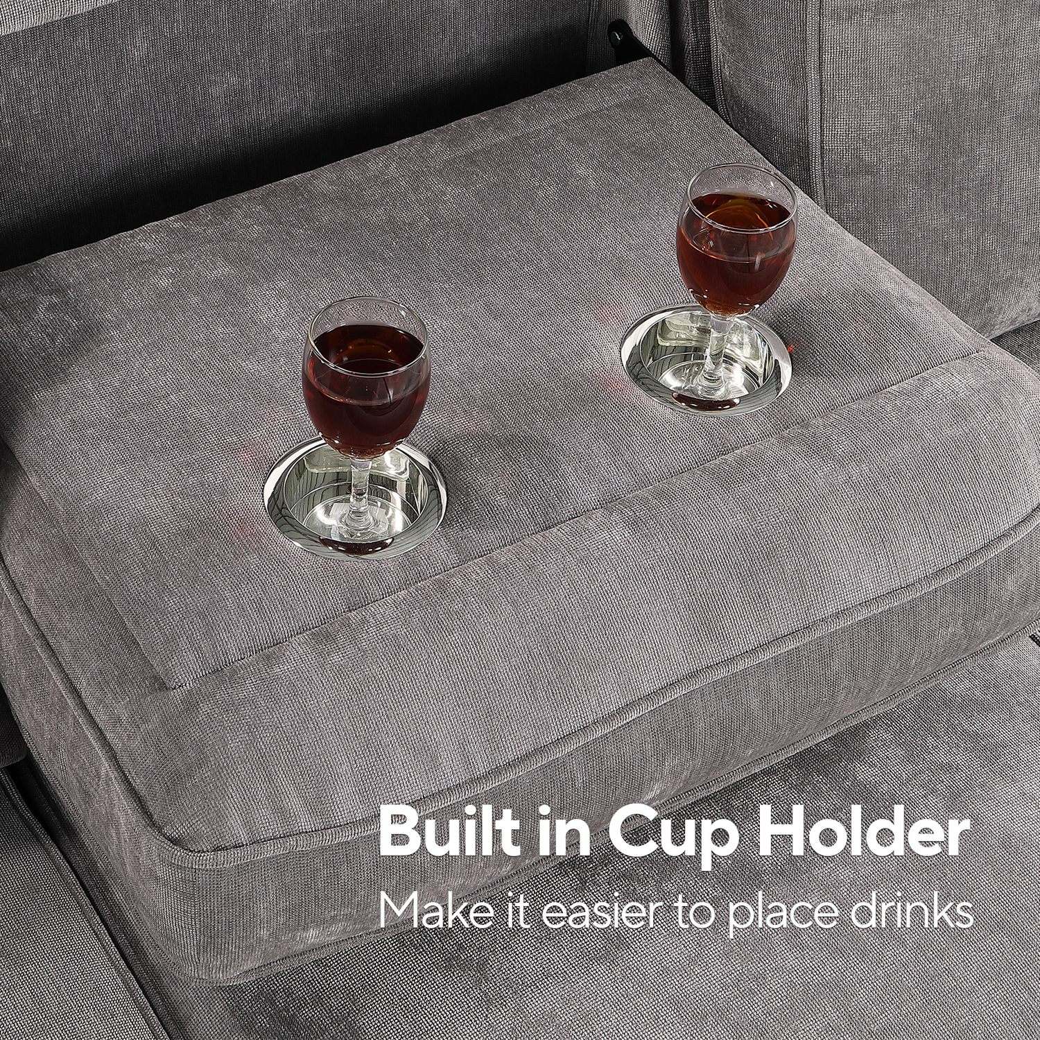 Upholstery Sleeper GREY Sectional Sofa with Storage Space, USB port, 2 cup holders on Back Cushions