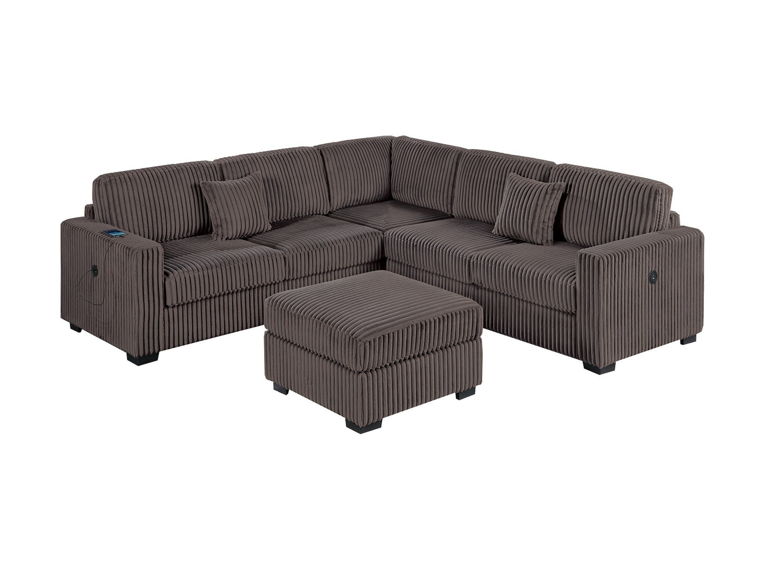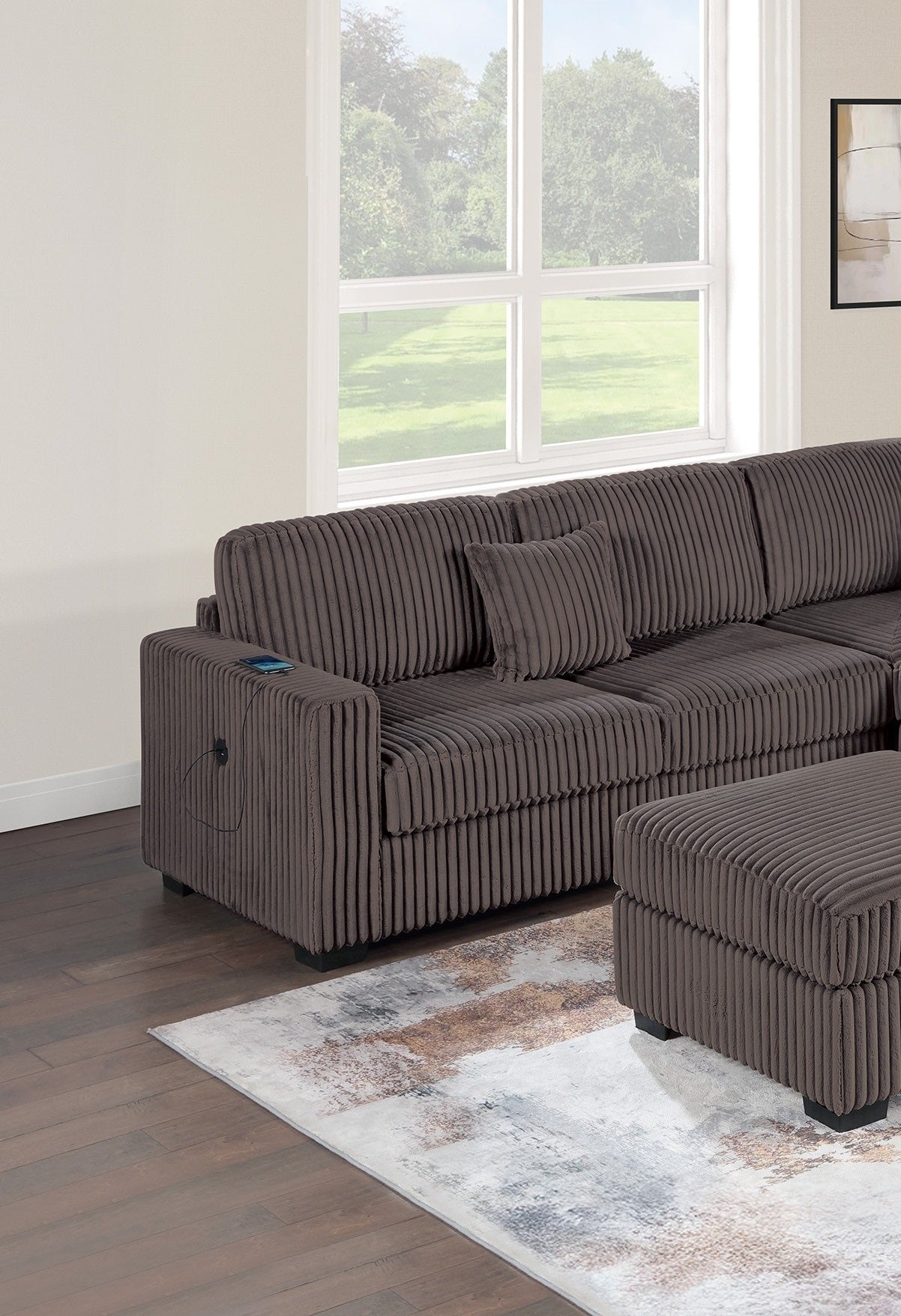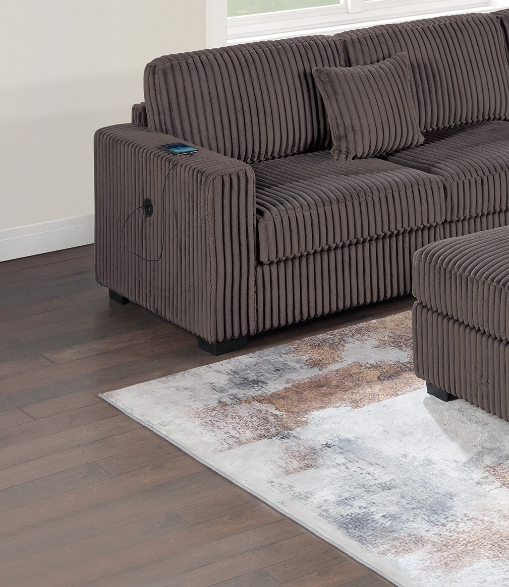 Living Room Corduroy Upholstered Chocolate 4pc Sectional Set RAF/LAF One-Arm Loveseat W/USB, Corner Wedge, Cocktail Ottoman Cushion Couch is available