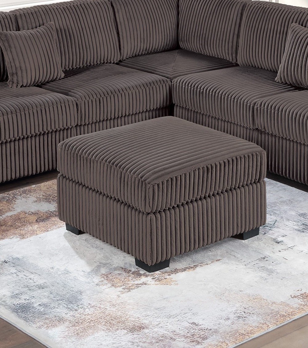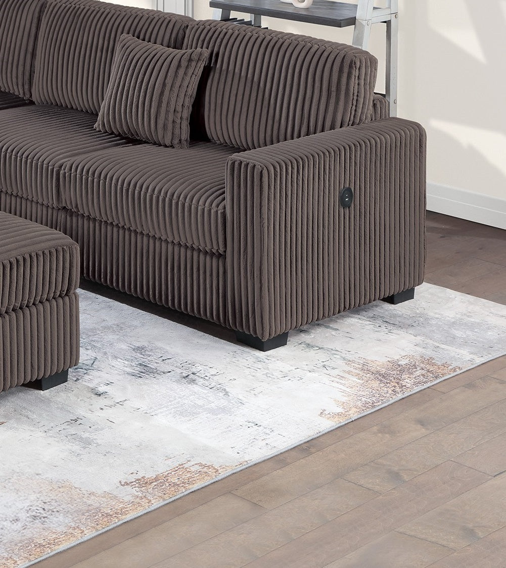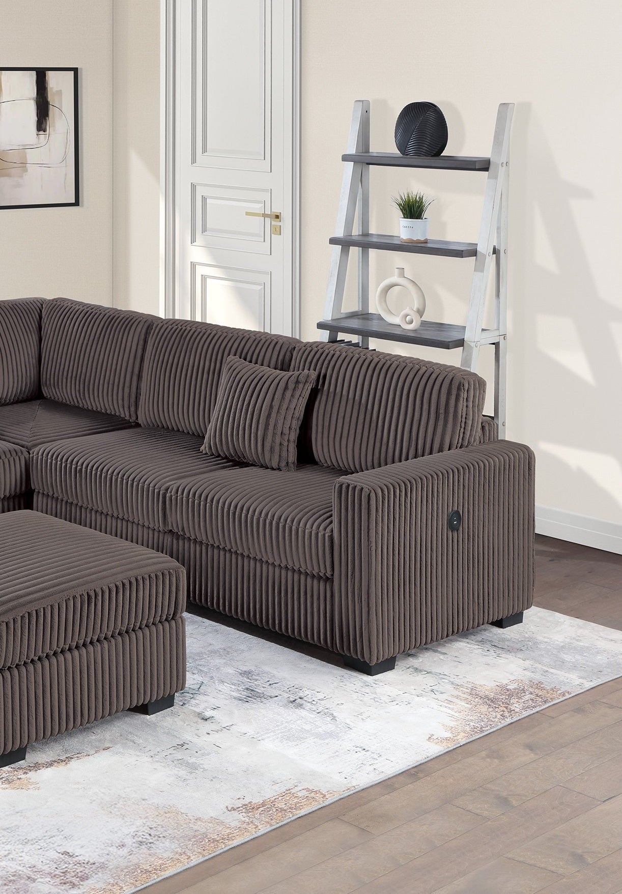 Living Room Corduroy Upholstered Chocolate 4pc Sectional Set RAF/LAF One-Arm Loveseat W/USB, Corner Wedge, Cocktail Ottoman Cushion Couch is available