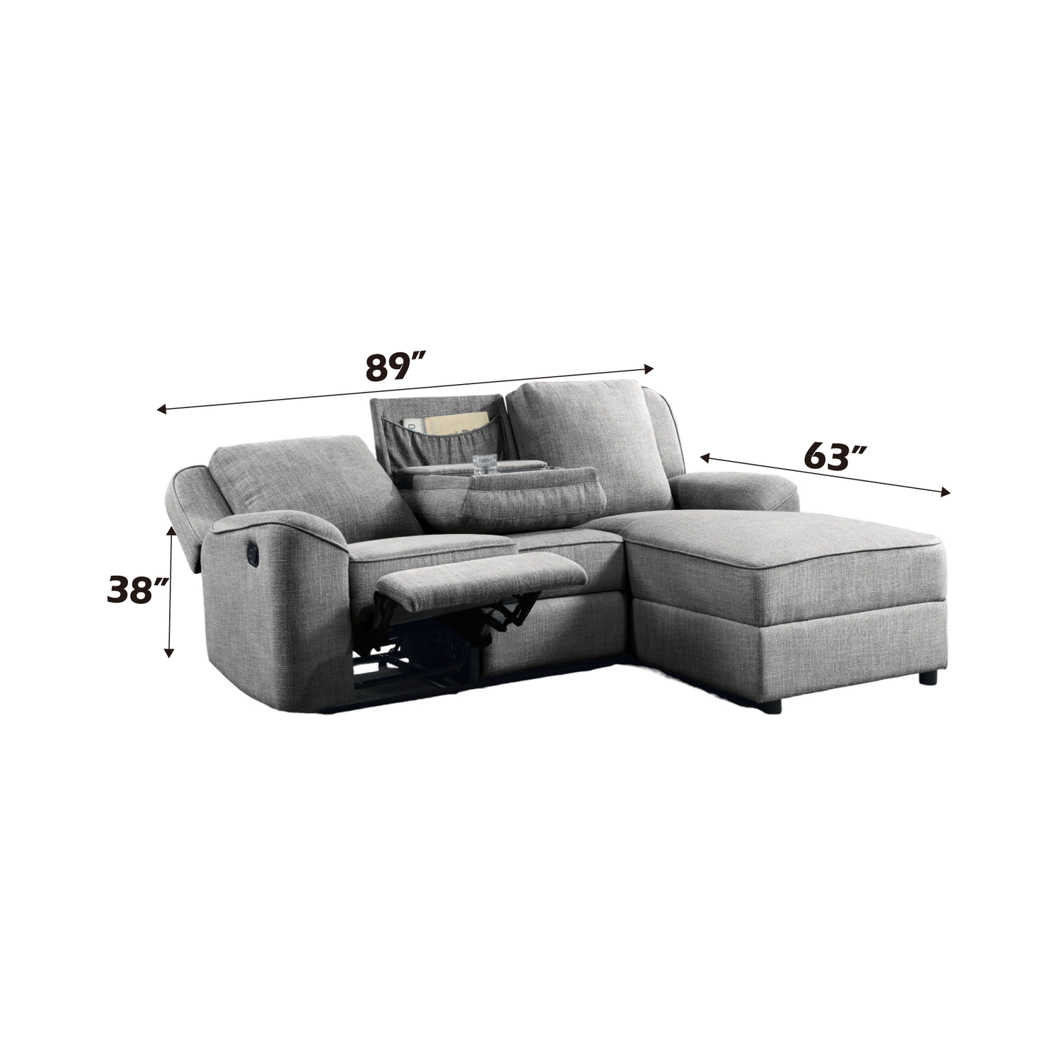 Destiny Gray Linen Sectional Sofa with Dropdown Table is available