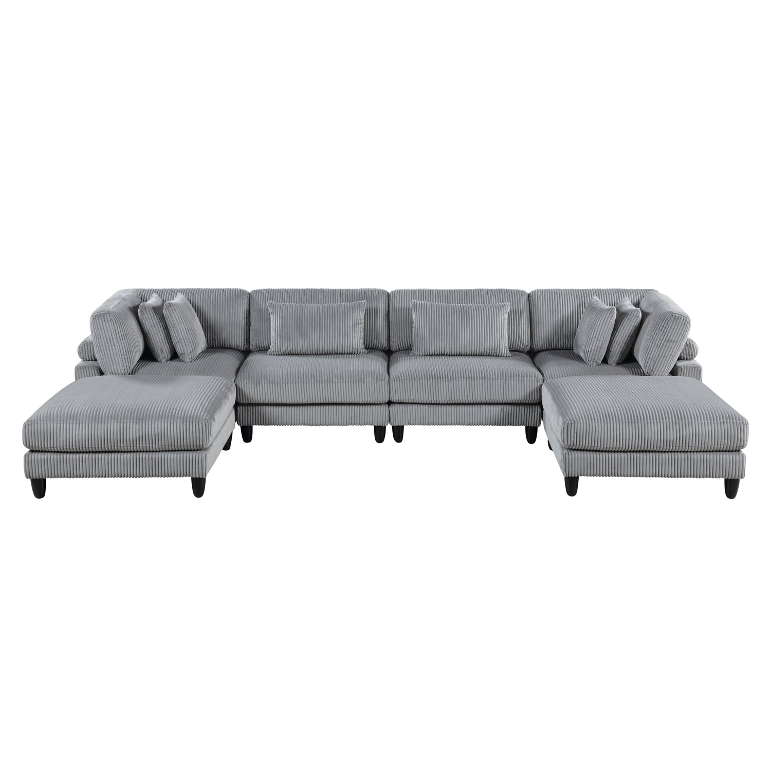 6pc Modular Sectional Set Gray Corduroy Upholstery 2x Armless Chairs 2x Corner Seats 2x Ottomans Pillows Living Room Furniture