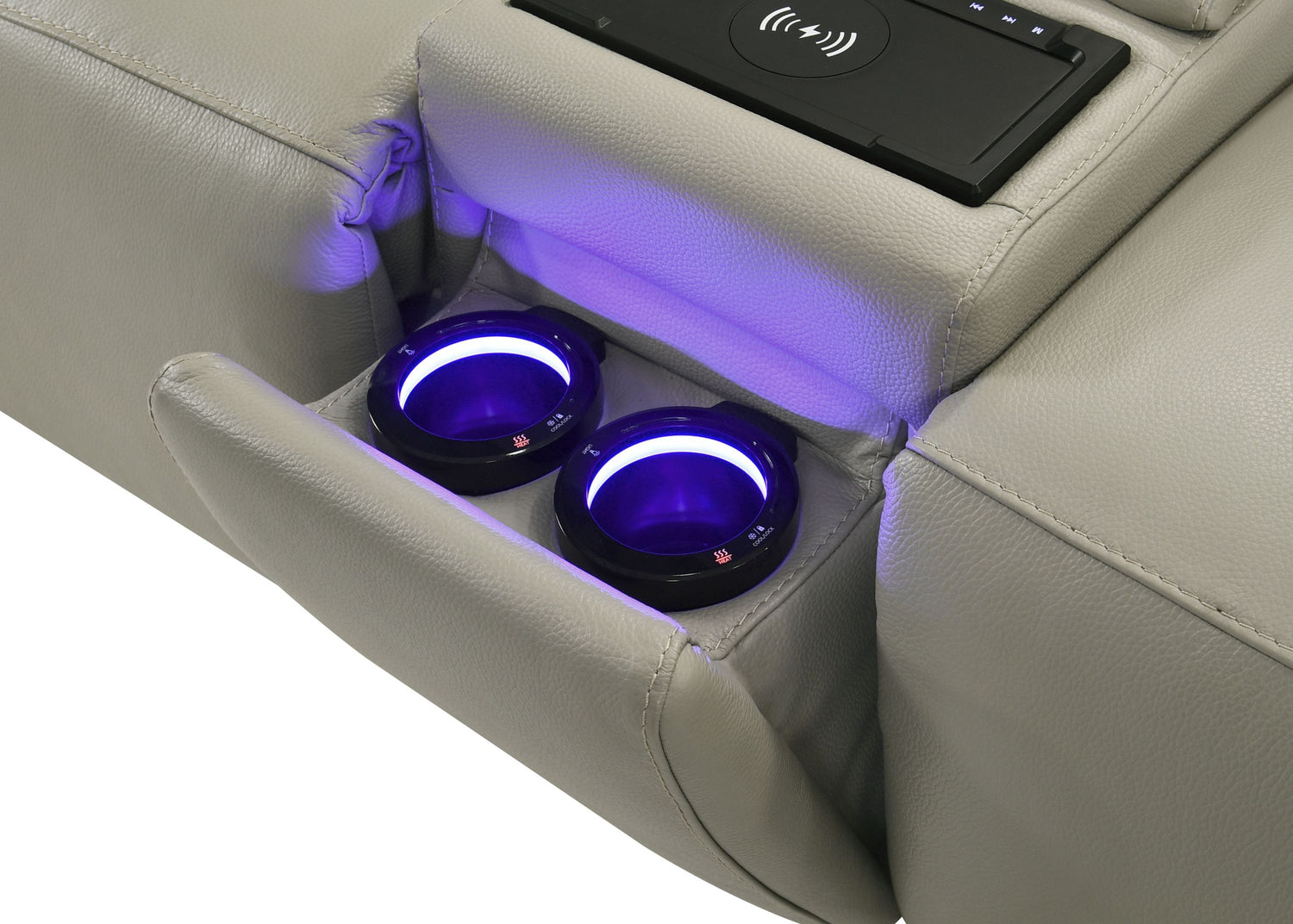 - Cup Holder & Storage, 2 USB, Speaker media wireless tray with reading lamp &cooler & cupholder