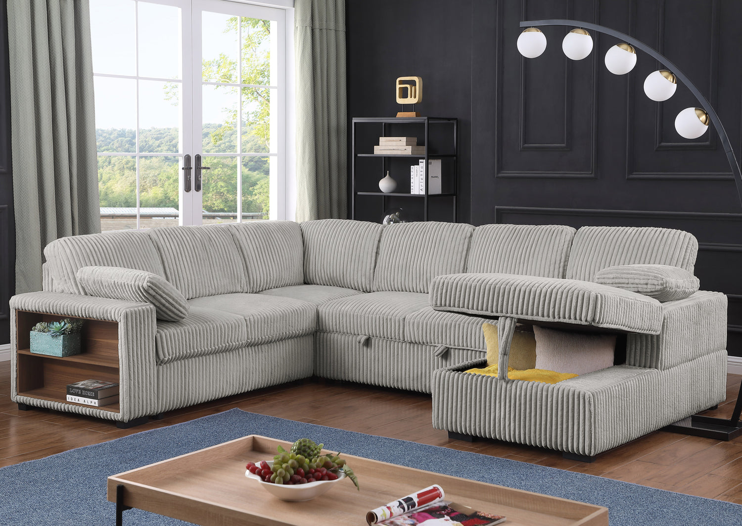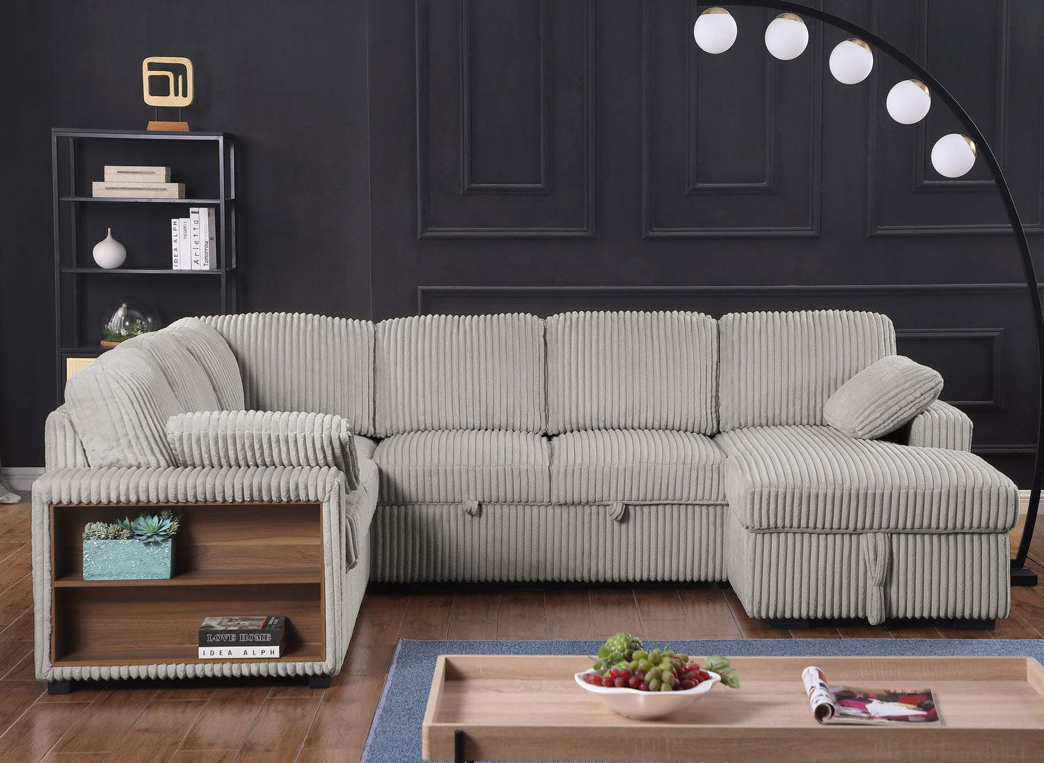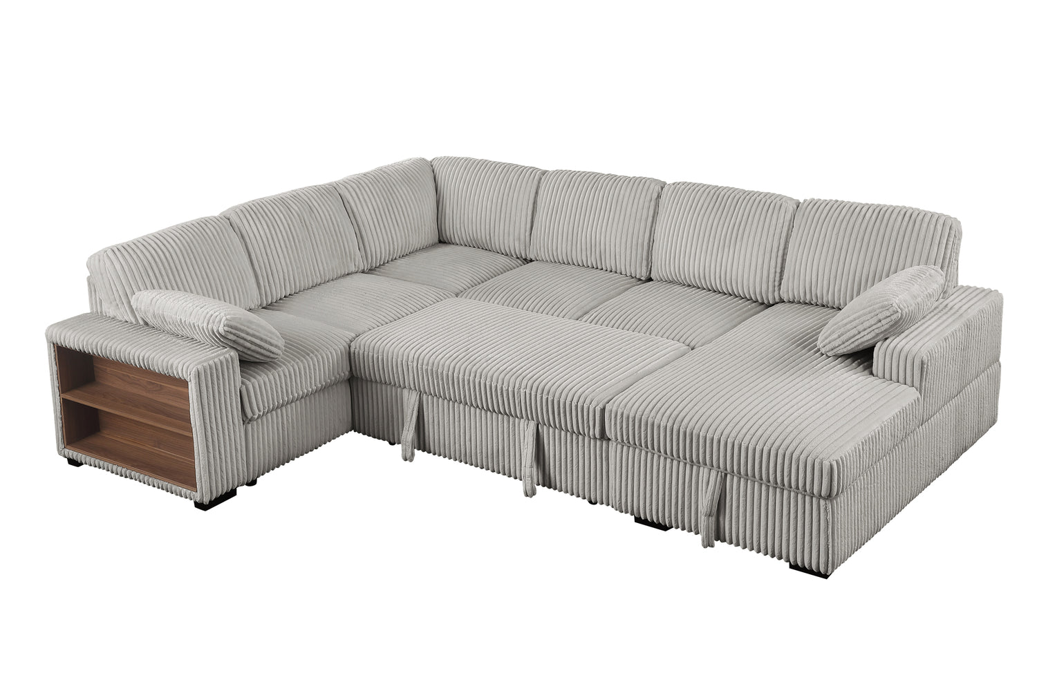 Sectional Sleeper Sofa with Pull Out Couch Bed Convertible Plush Corduroy Cloud Couch with Storage Chaise & Storage Armrests,Light Gray(Plush Corduroy Fabric)