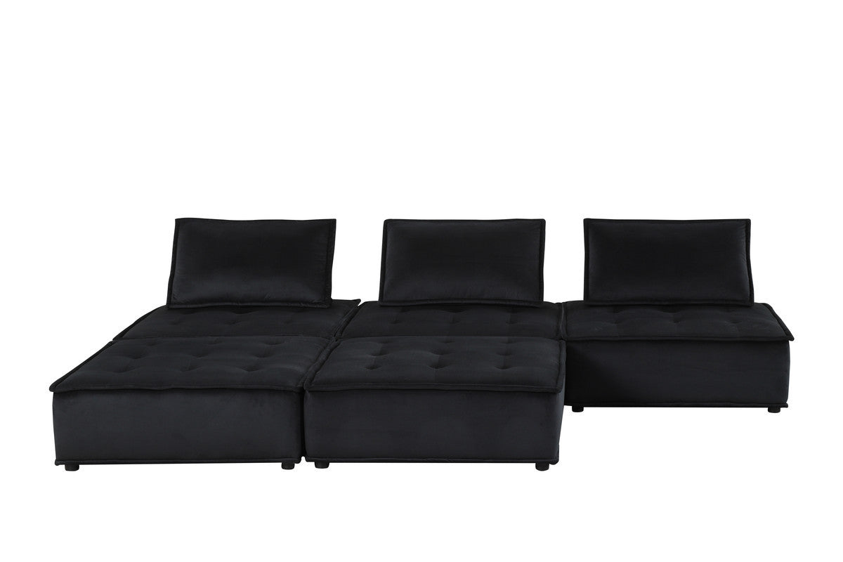 Aveline 120'W Black Velvet 5 Pc Sectional Sofa Ottoman