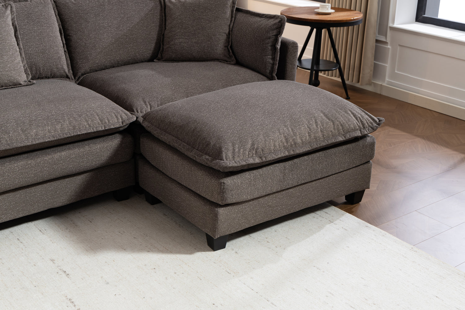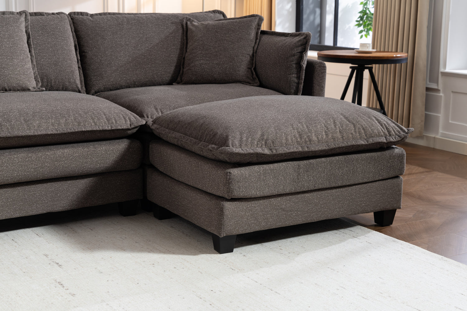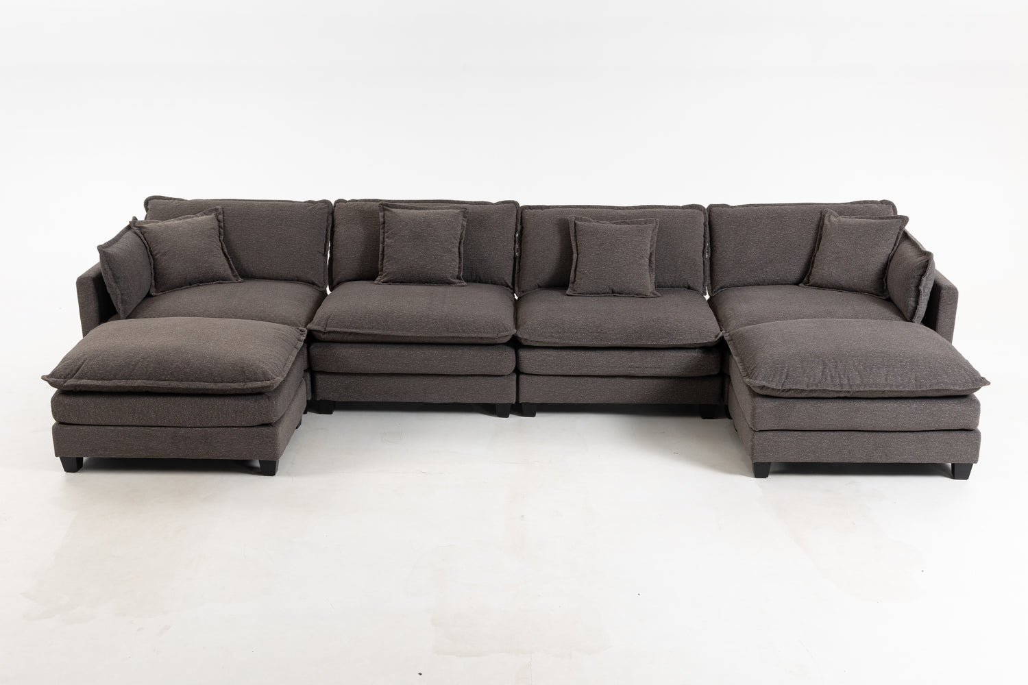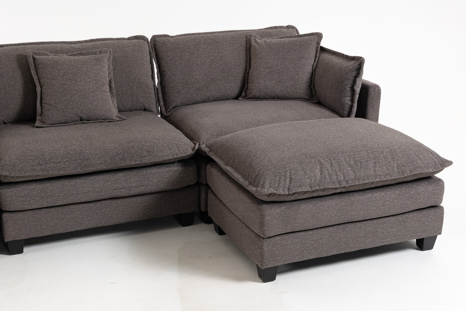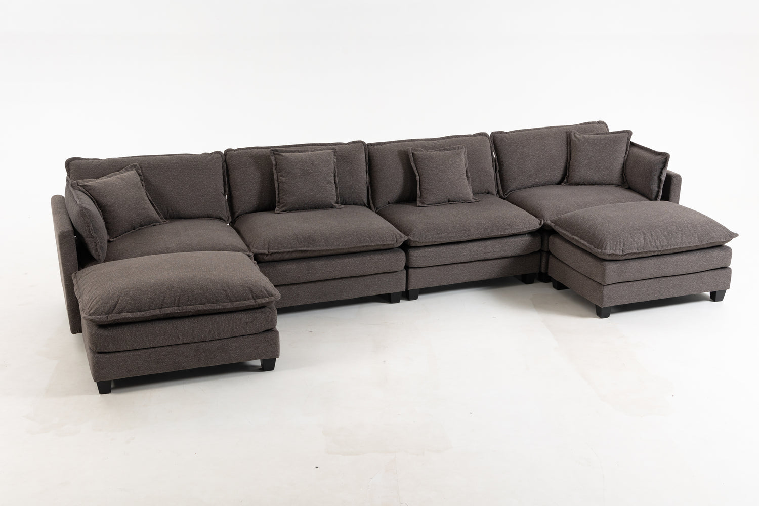 Modern 4seats with 2ottoman 149.61'Sectional Sofa with Waist Pillows,4-seat Upholstered Symmetrical Sofa Furniture,Sleeper Sofa Couch with Chaise Lounge for Living Room,Apartment,2 Color is available