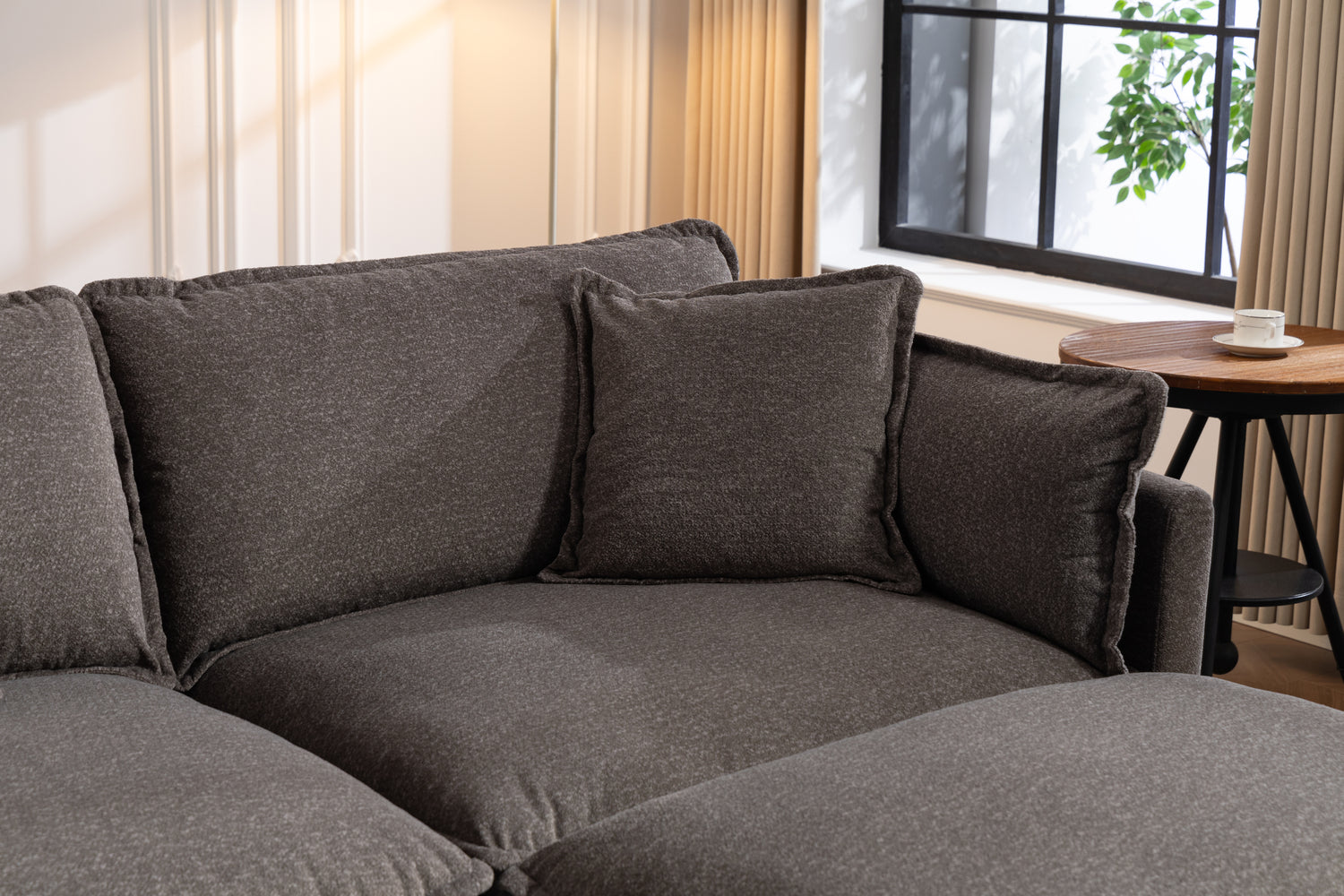 - Upholstered in high-end breathable Chenille fabric and high-quality sponge, with cushioned thick foam at the backrest and seat for prime relaxation. Lean back and stretch out your legs long on the ottomans when you or your guests need more space. Customize the placement of the pillows anywhere you would like to add extra support when sitting after a long day or watching a movie