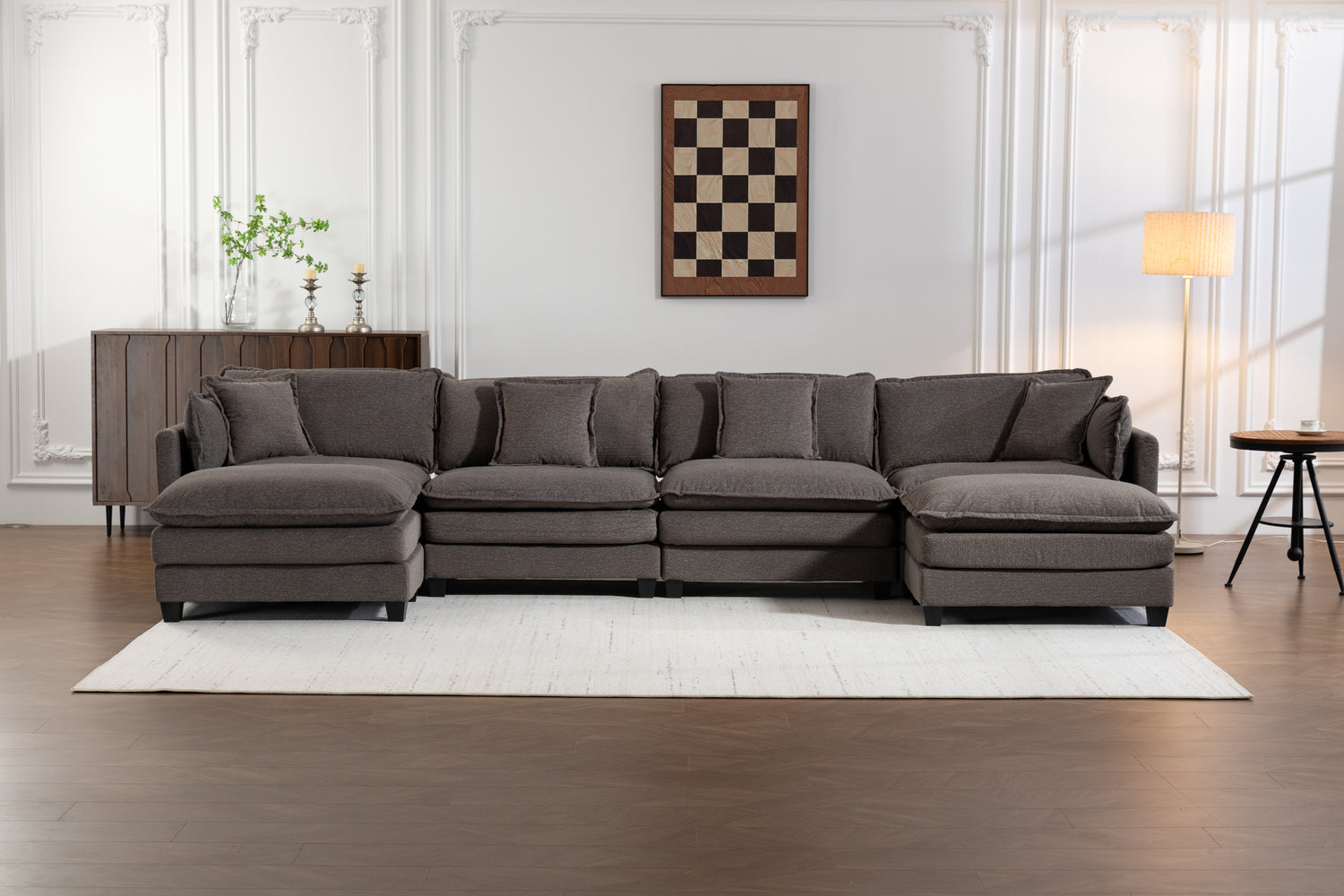 Modern 4seats with 2ottoman 149.61'Sectional Sofa with Waist Pillows,4-seat Upholstered Symmetrical Sofa Furniture,Sleeper Sofa Couch with Chaise Lounge for Living Room,Apartment,2 Color