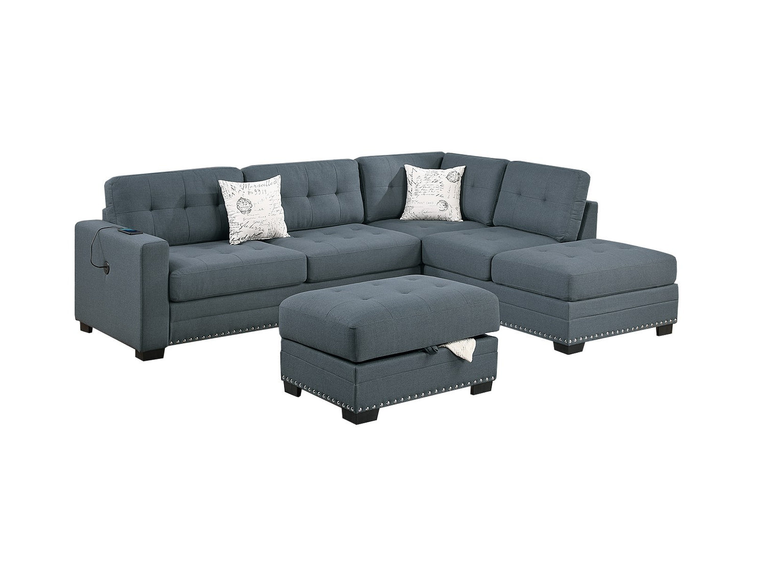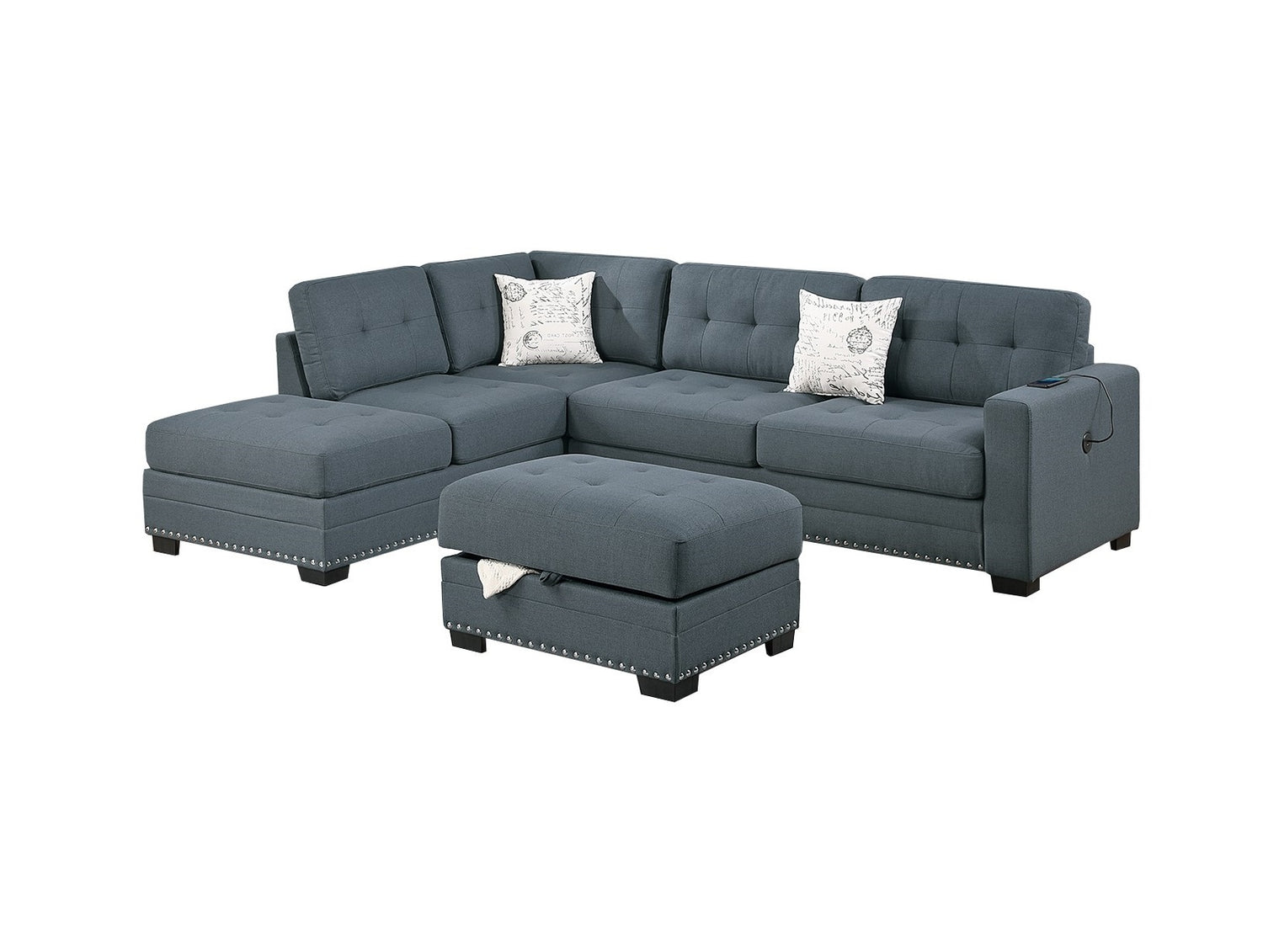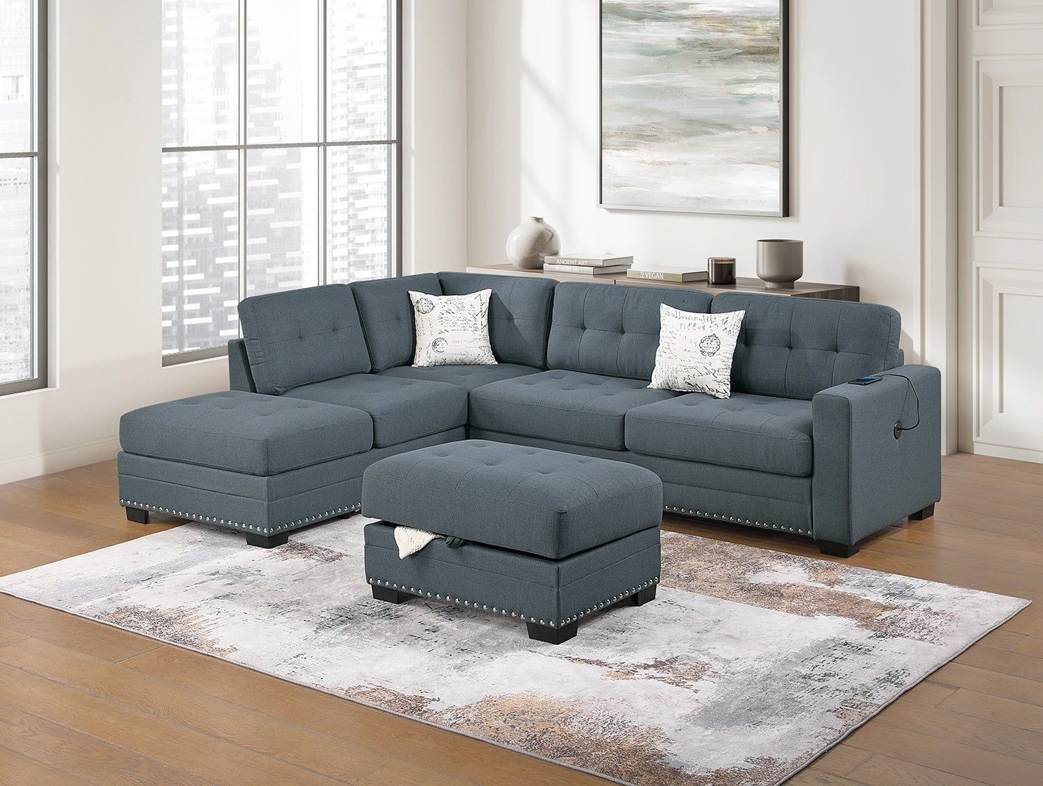 - Listing Includes - 3pc Sectional Sofa Set (Reversible Chaise, Sofa w USB And Storage Ottoman ) Only.
