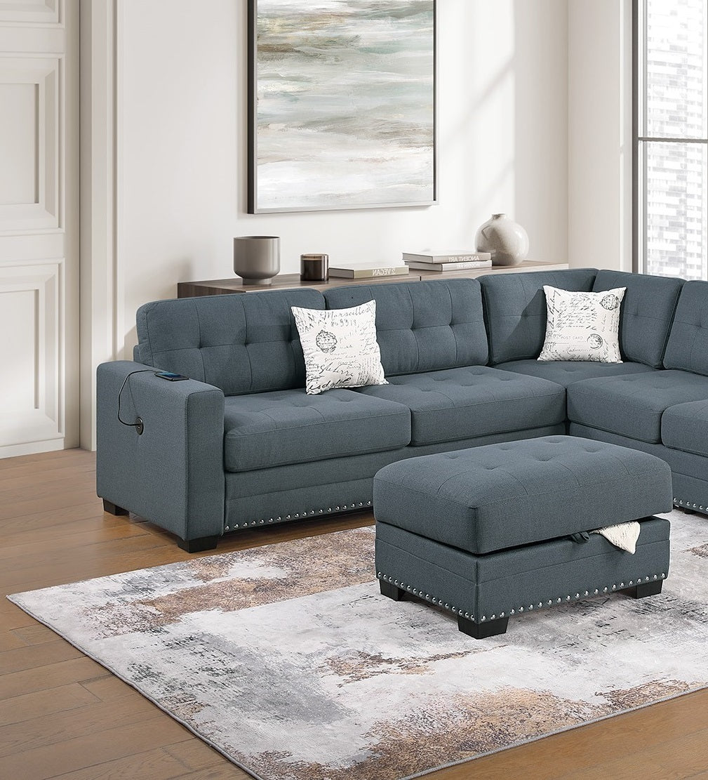 Listing Includes - 3pc Sectional Sofa Set (Reversible Chaise, Sofa w USB And Storage Ottoman ) Only.